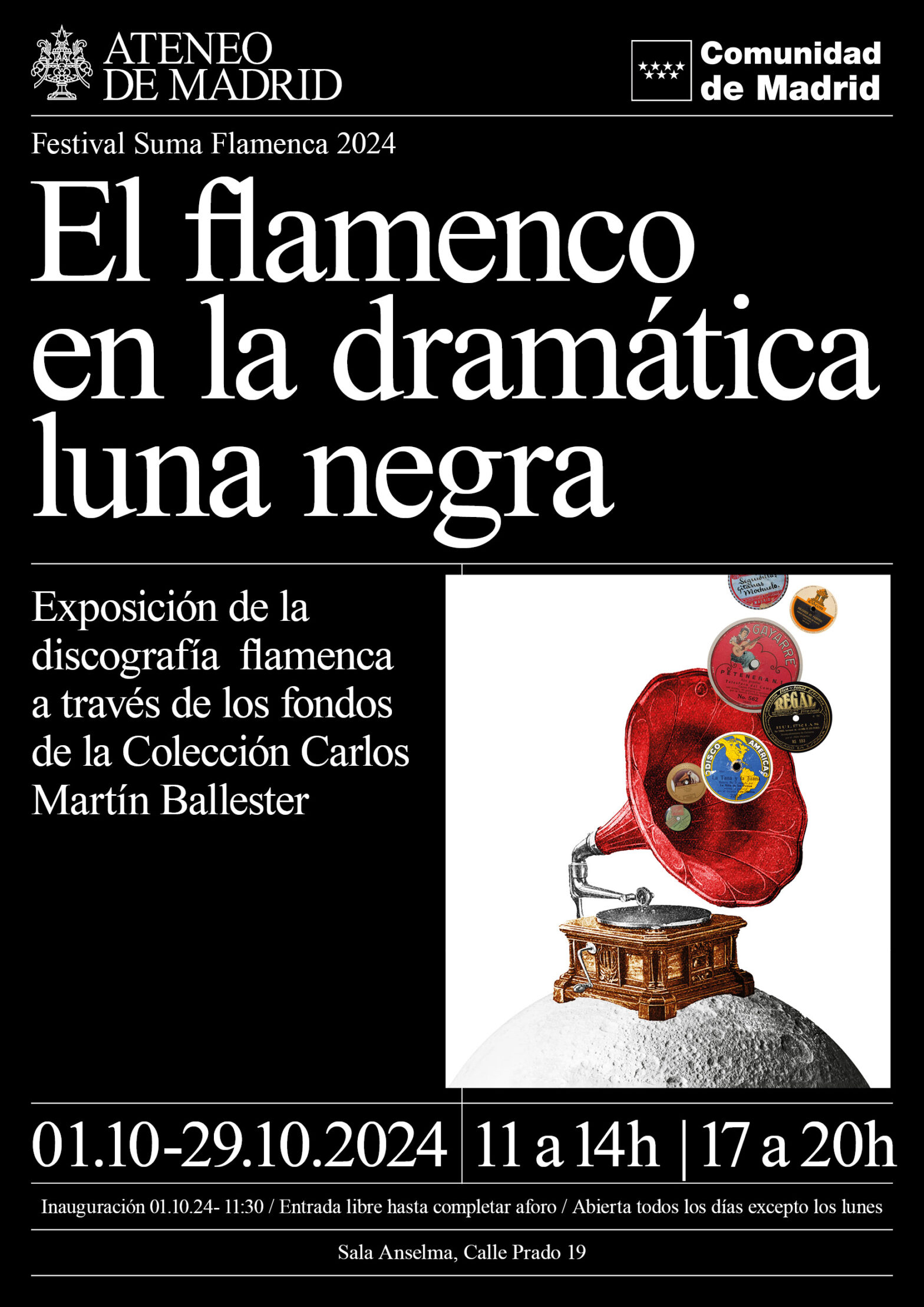 La exposición «El flamenco en la dramática luna negra. La discografía flamenca a través de los fondos de la Colección Carlos Martín Ballester» supone un recorrido por la música flamenca registrada para el fonógrafo y el gramófono, fértil periodo en el que se configuraron buena parte de las bases del género.