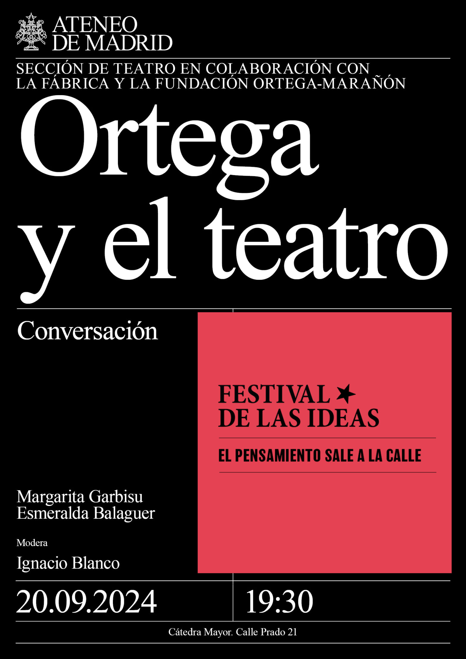 Sección de Teatro en colaboración con La Fábrica y la Fundación Ortega Marañón. Margarita Garbisu y Esmeralda Balaguer. Modera: Ignacio Blanco. Cátedra Mayor. 19:30h.