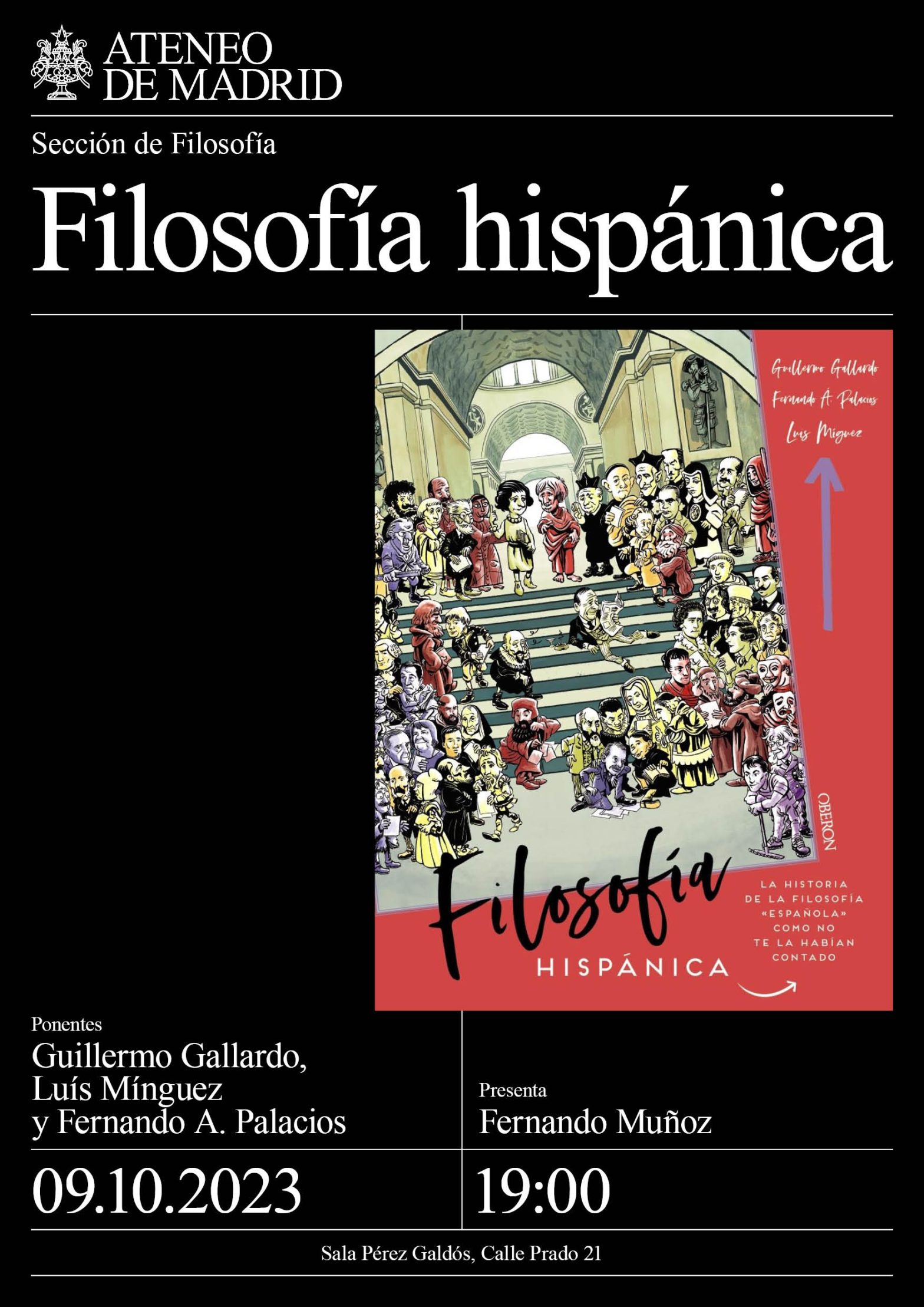 Sección de Filosofía. Intervienen: Guillermo Gallarado, Fernando A. Palacios y Luís Mínguez. Presenta: Fernando Muñoz. Sala Pérez Galdós. 19h.