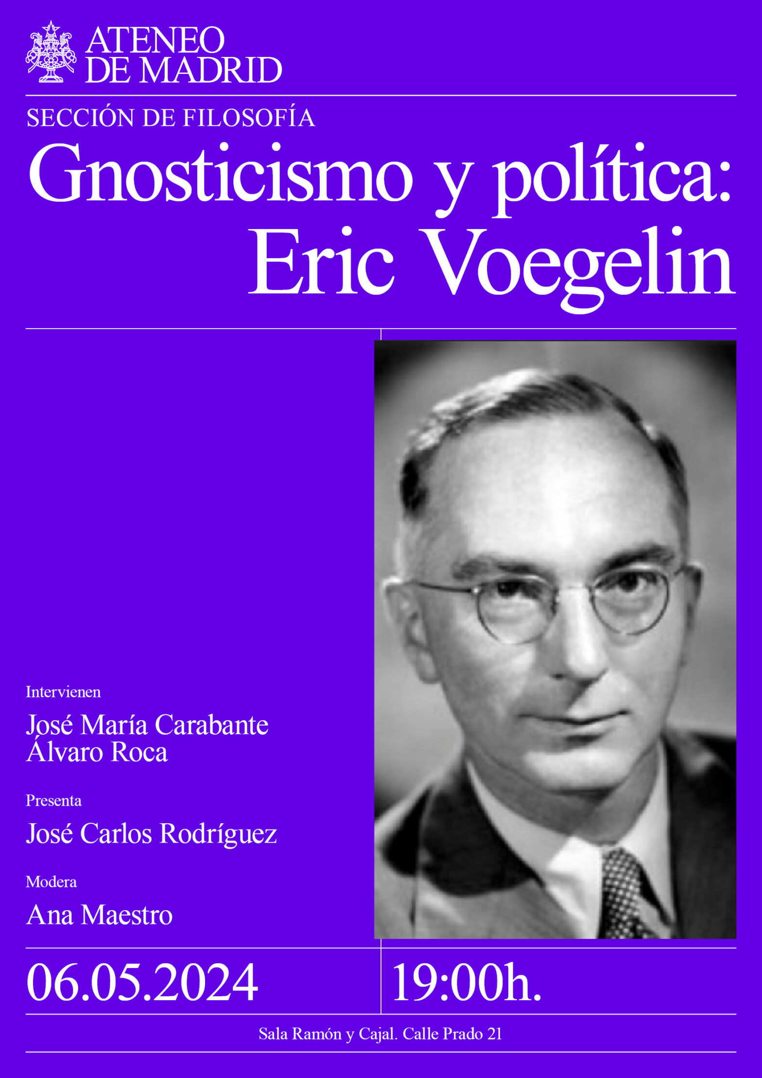 Sección de Filosofía. Intervienen: José María Carabante, profesor de Filosofía del Derecho y Derechos Humanos en la Universidad Complutense de Madrid. Doctor en Filosofía del Derecho; y Álvaro Roca, doctor en Humanidades por la Universidad Francisco de Vitoria. Presenta: José Carlos Rodríguez. Modera: Ana Maestro. Sala Ramón y Cajal. 19:00h.