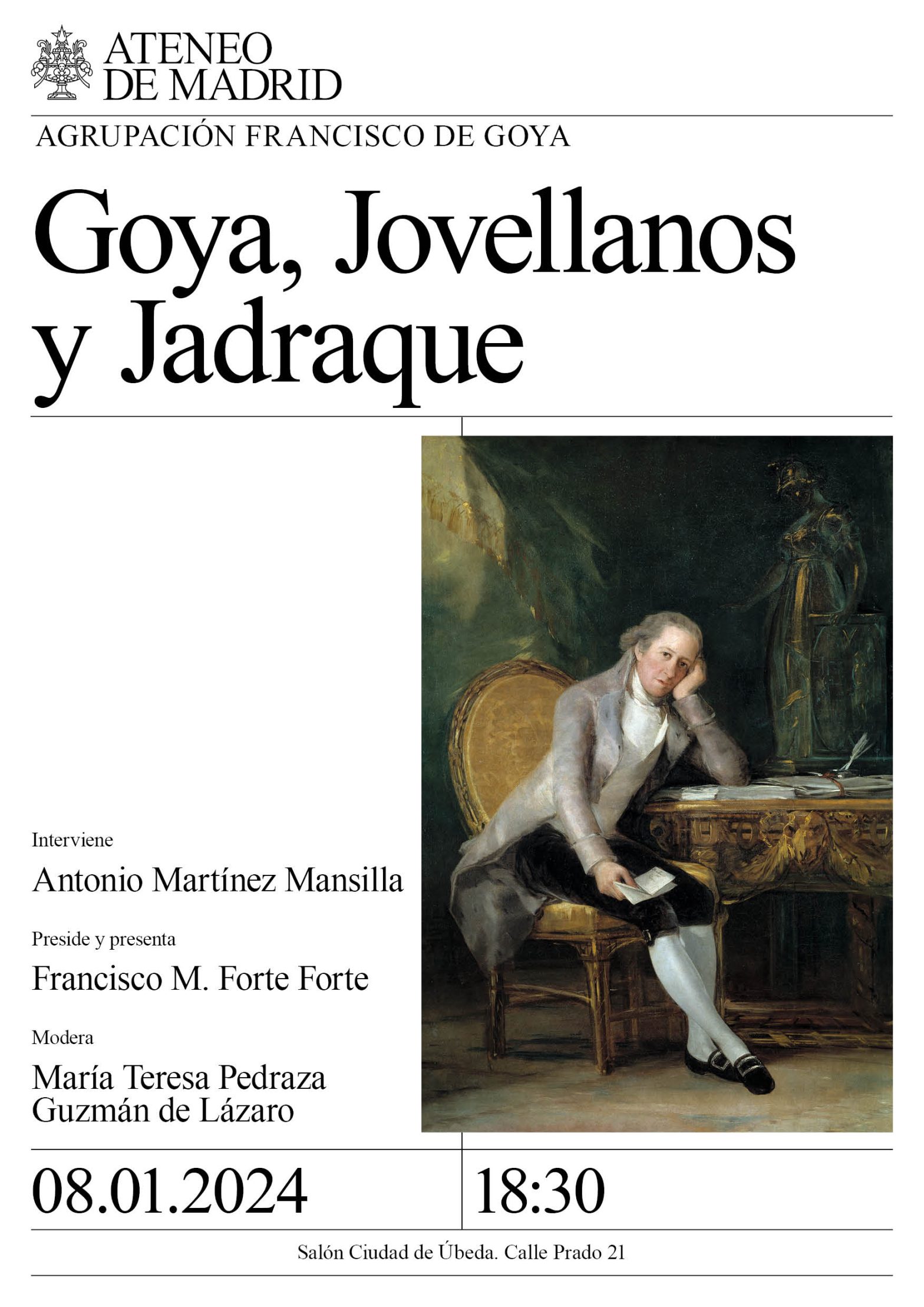 Agrupación Francisco de Goya. Interviene: Antonio Martínez Mansilla doctor en Historia. Profesor y ensayista. Autor del trabajo del mismo título que la conferencia Preside y modera: Francisco M. Forte Forte. Modera: María Teresa Pedraza Guzmán de Lázaro. Salón Ciudad de Úbeda. 18:30h.