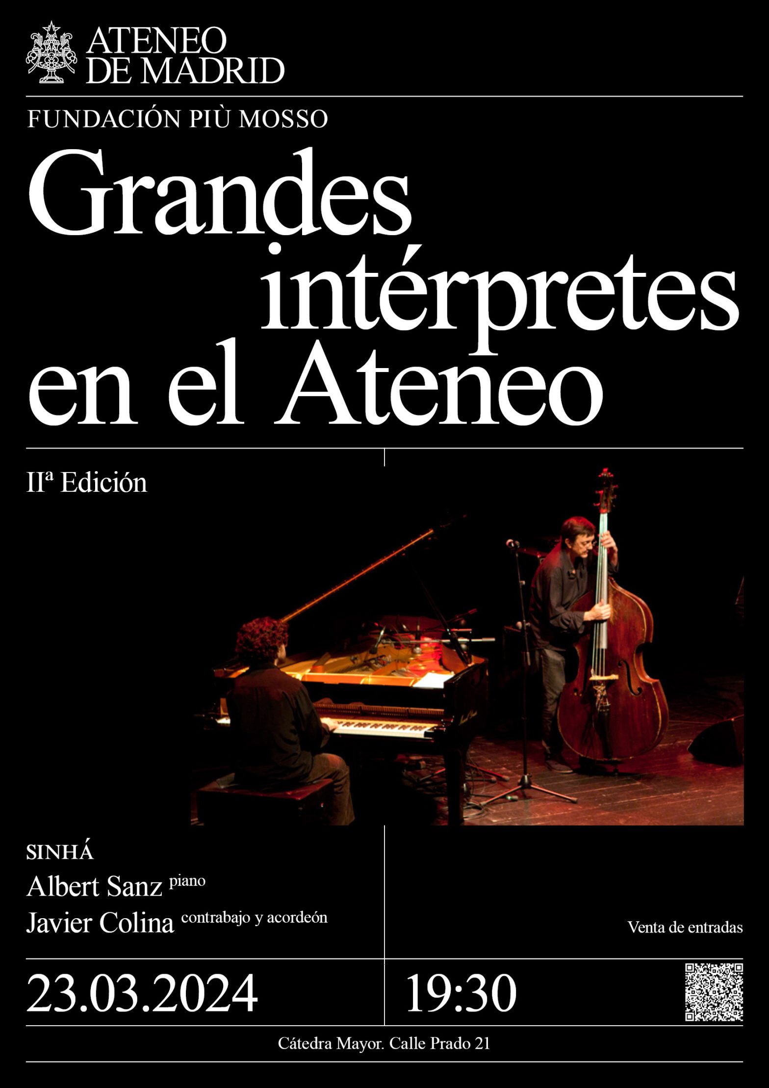 Fundación Più Mosso. SINHÁ. Albert Sanz, piano y Javier Colina, contrabajo y acordeón. Cátedra Mayor. 19:30h.
