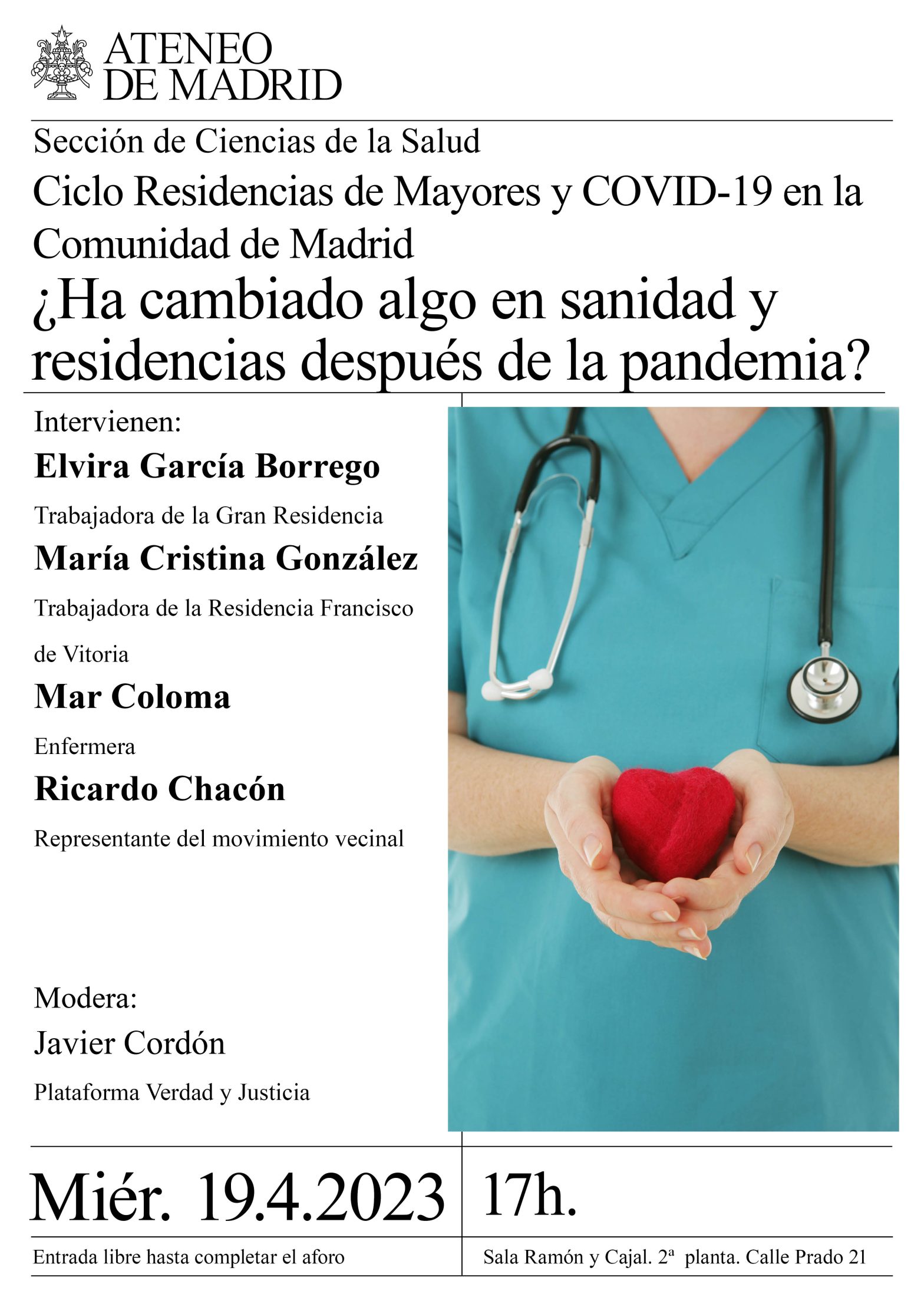 Sección Ciencias de la Saludo. Ciclo Residencias de Mayores y COVID-19 en la Comunidad de Madrid. Intervienen: