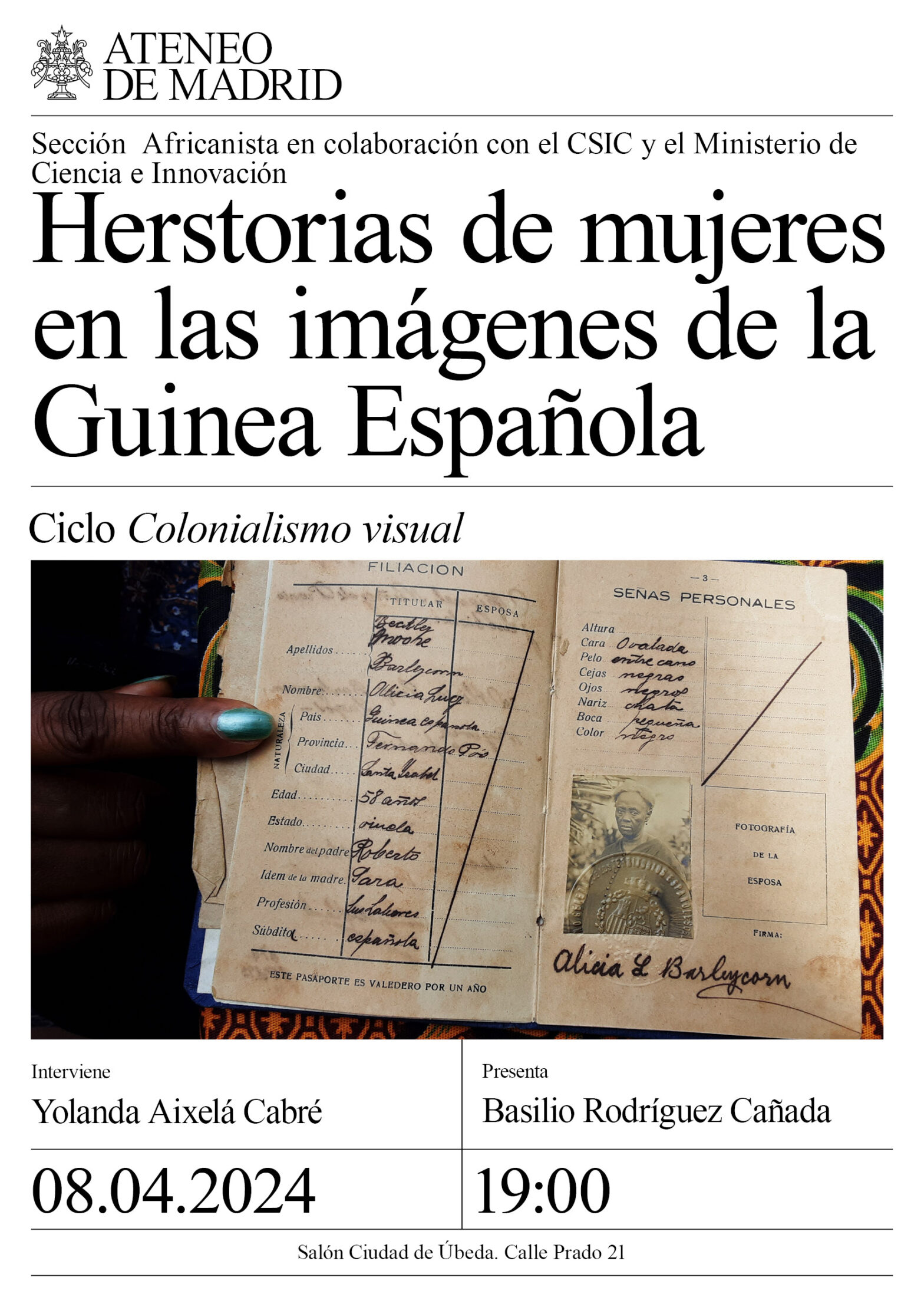 Las fotografías de los fondos documentales de la Guinea Española han permitido aproximar realidades sociales que eran geográfica y culturalmente distantes respecto a las que caracterizaban la metrópolis. Las mujeres no acostumbraron a ser protagonistas, pues fueron arrinconadas de la historia colonial, tanto por europeos como por guineoecuatorianos, aunque aparecieran de forma más o menos implícita en las imágenes. Esta conferencia plantea revisar algunos enfoques para propiciar herstorias (entendidas como historias de ellas). Con ese fin estudiará el caso krió fernandino, pues durante el proceso de elaboración de la etnografía histórica, las fuentes orales y documentales permitieron reinterpretar ciertas fotografías, hasta el punto de dar algunos resultados que podían tensar las costuras de la racialización y el androcentrismo colonial.