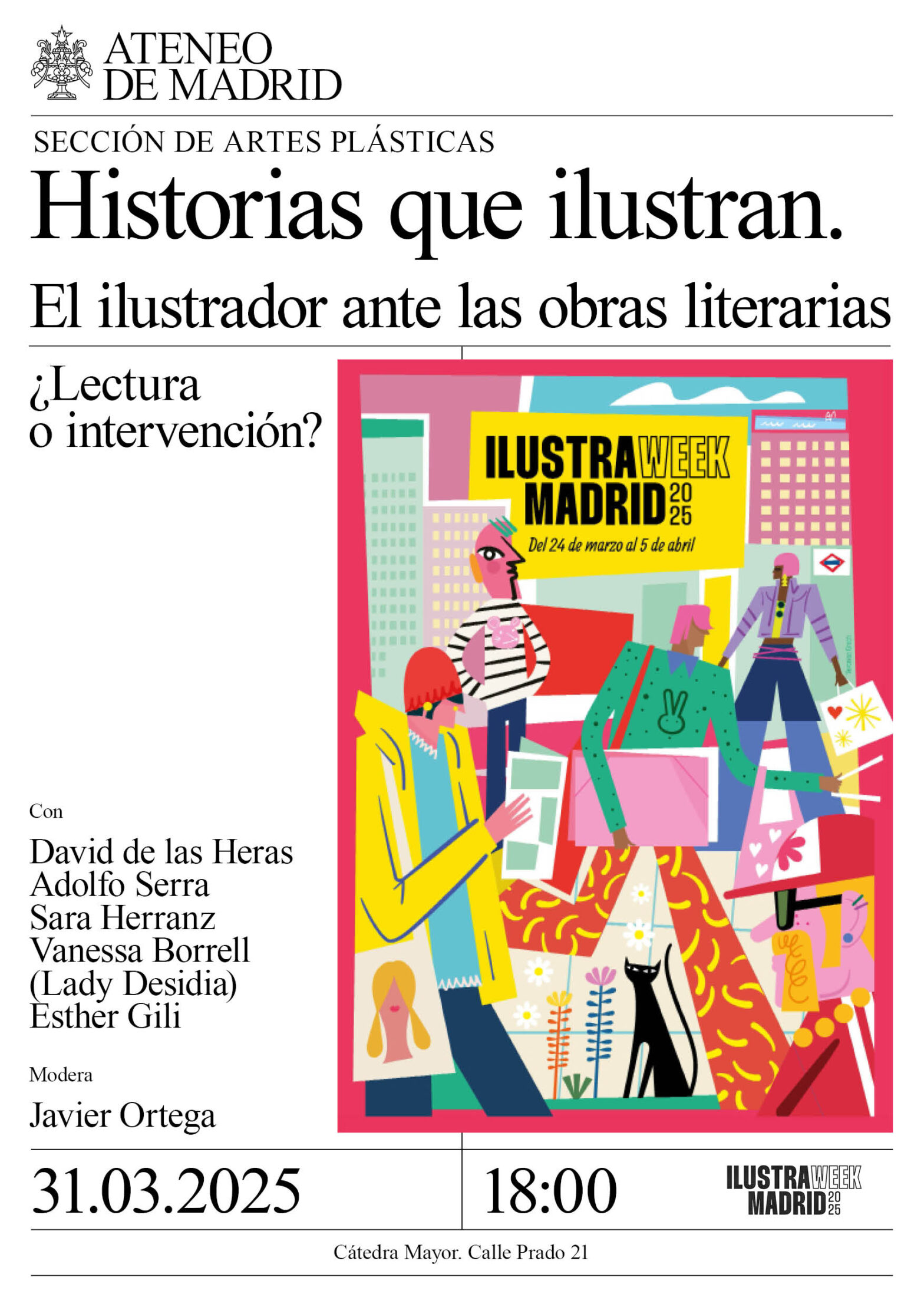 Sección de Artes Plásticas. Intervienen: David de las Heras, Adolfo Serra, Sara Herranz, Vanessa Borrell (Lady Desidia) y Esther Gili. Modera Javier Ortega. Cátedra Mayor. 18:00h.