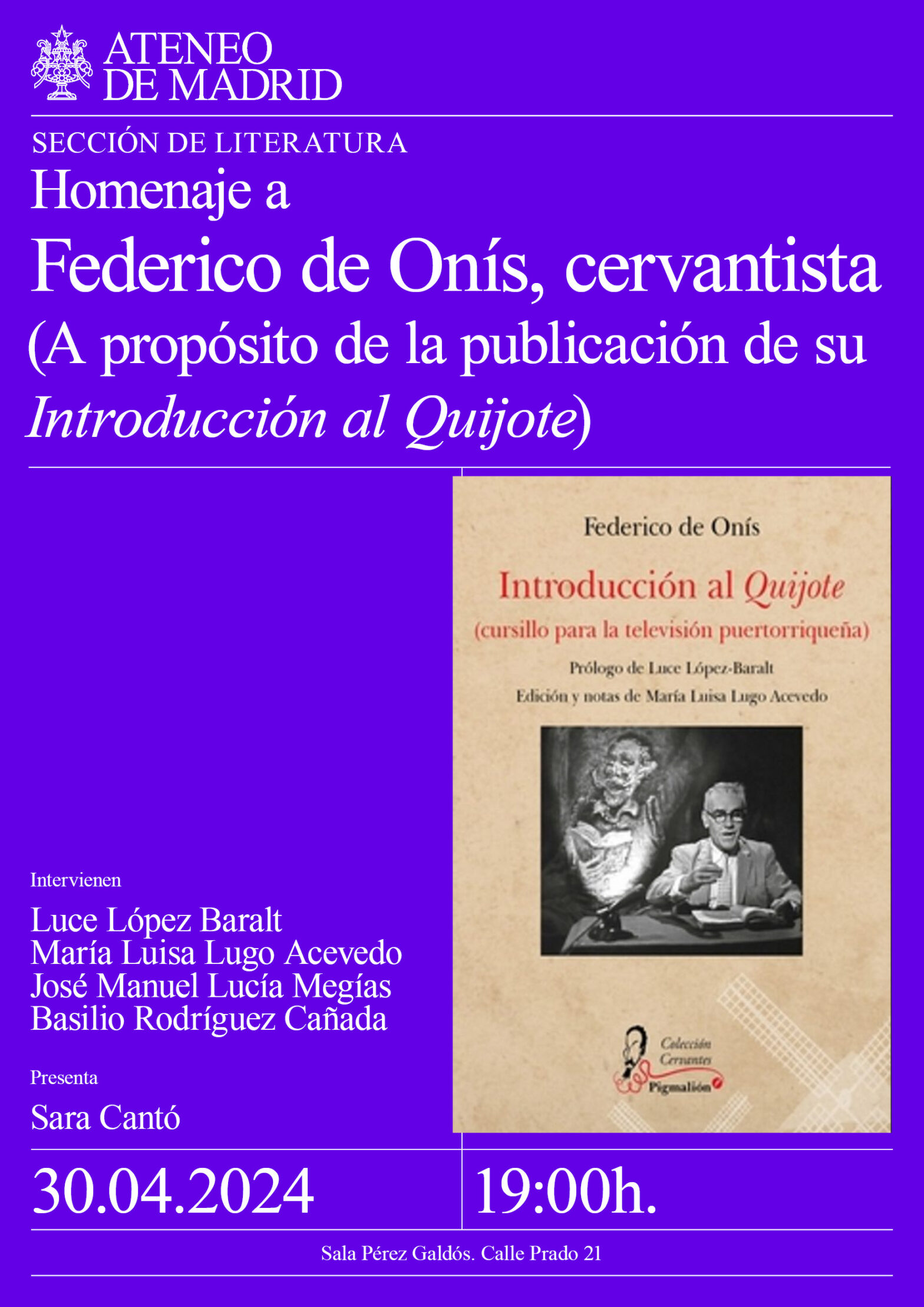 Sección de Literatura. Intervienen: Luce López Baralt, catedrática de la Universidad de Puerto Rico; María Luisa Lugo Acevedo, catedrática de la Universidad de Puerto Rico, y autora de la edición del libro; José Manuel Lucía Megías, catedrático de la UCM y director de la Colección Cervantes y Basilio Rodríguez Cañada, editor de Sial-Pigmalión. Presenta: Sara Cantó. Sala Pérez Galdós. 19:00h.