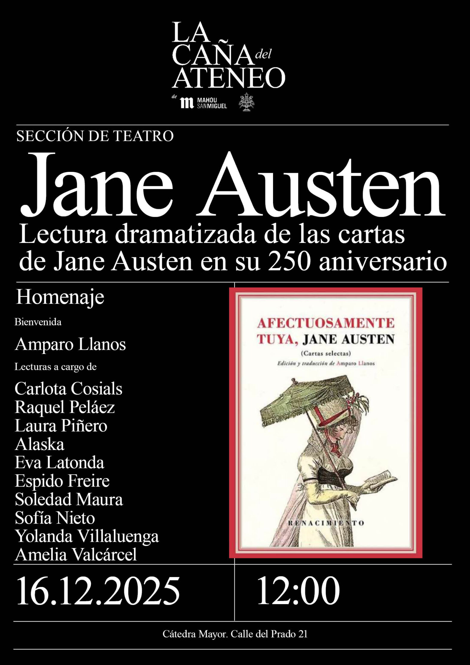 Lectura dramatizada de las cartas de Jane Austen en su 250 aniversario. Vídeo del evento (aquí)