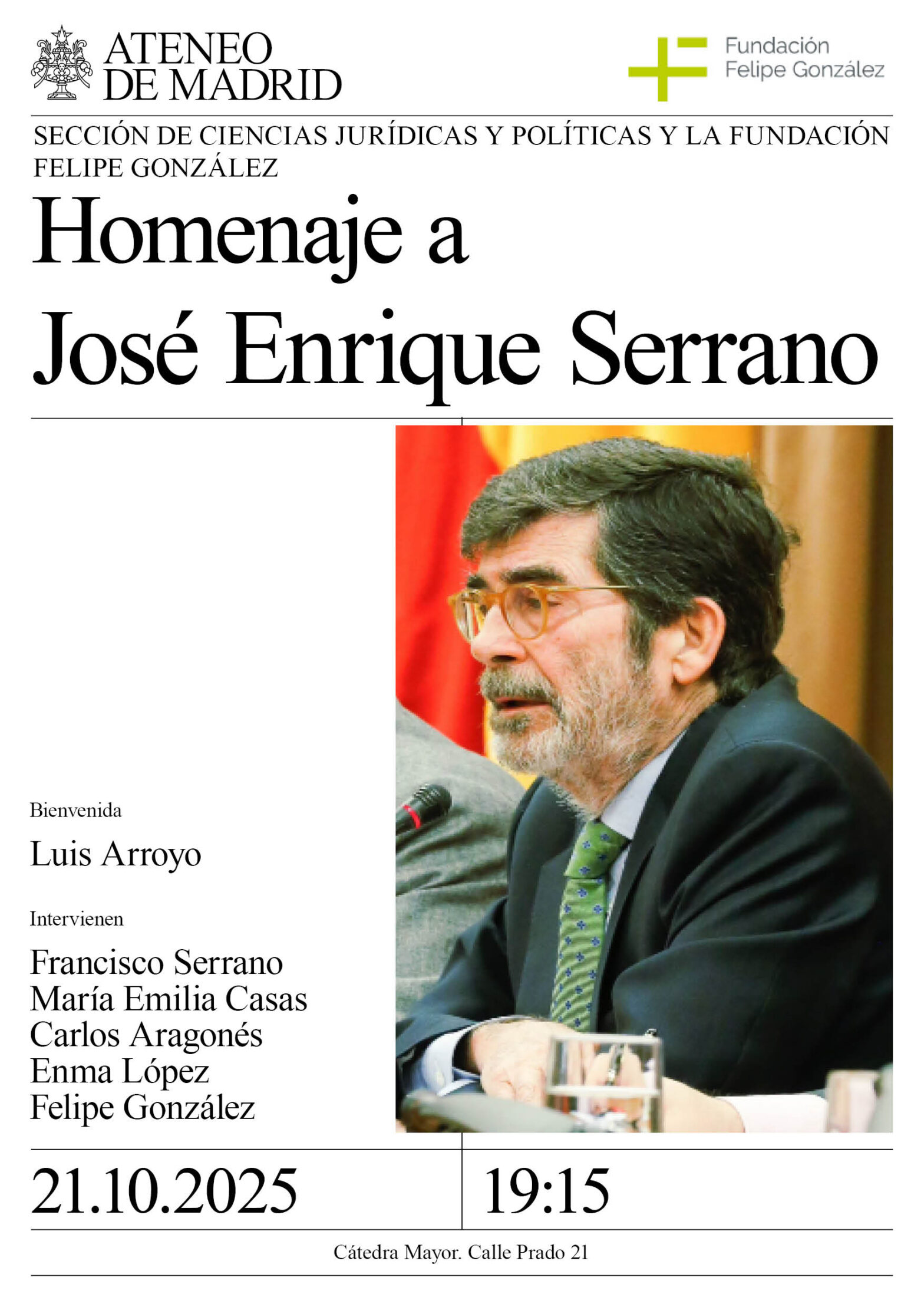 Sección de Ciencias Jurídicas y Políticas y la Fundación Felipe González. Bienvenida: Luis Arroyo. Intervienen: Francisco Serrano, María Emilia Casas, Carlos Aragonés, Enma López y Felipe González. Cátedra Mayor. 19:15h.