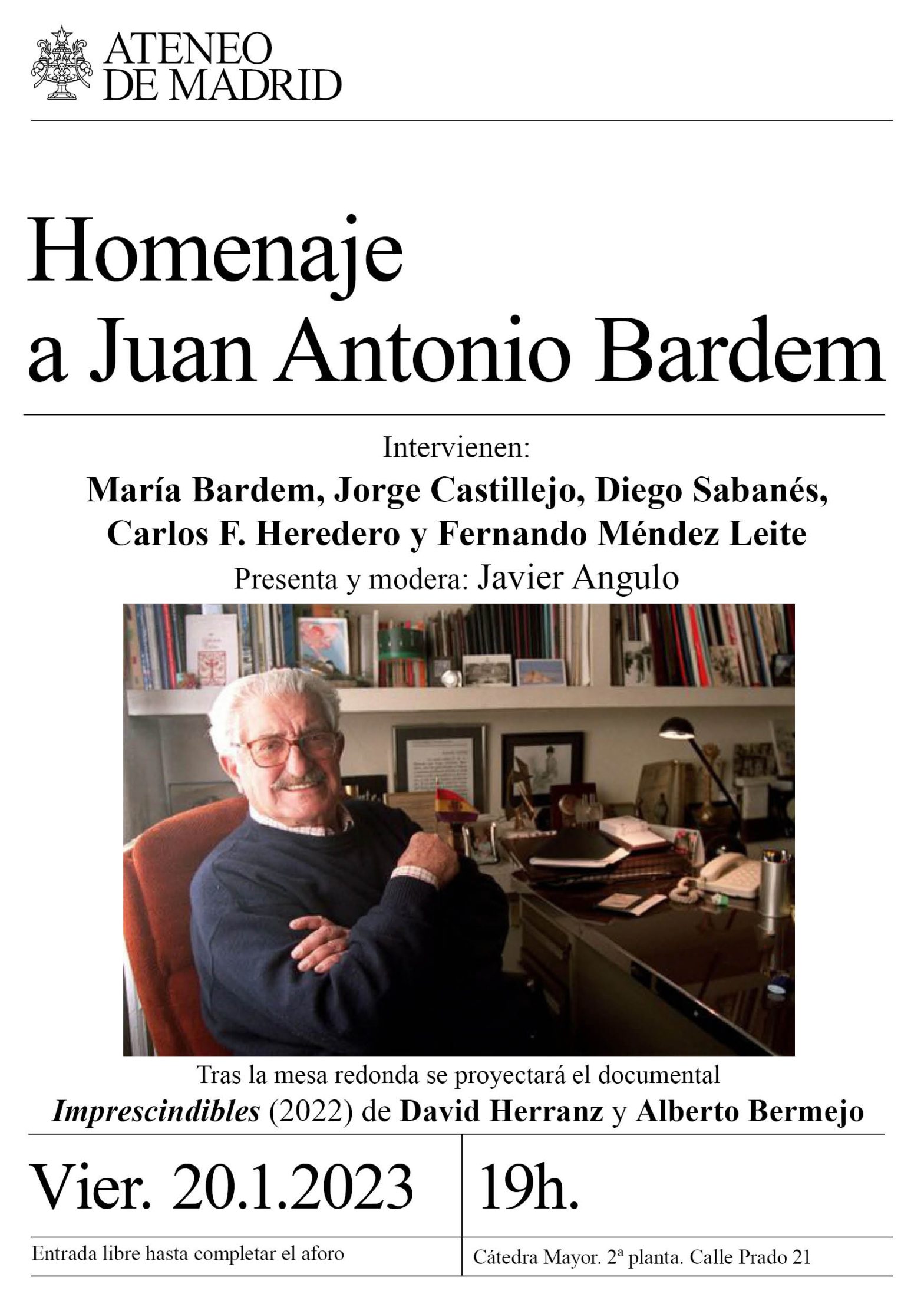 Intervienen: Maria Bardem, Jorge Castillejo, Diego Sabadés, Carlos F. Heredero y Fernando Méndez Leite. Presenta y modera Javier Angulo. Tras la mesa redonda se proyectará el documental «Imprescindibles» (2022) de David Herranz y Alberto Bermejo. Cátedra Mayor. 19h.