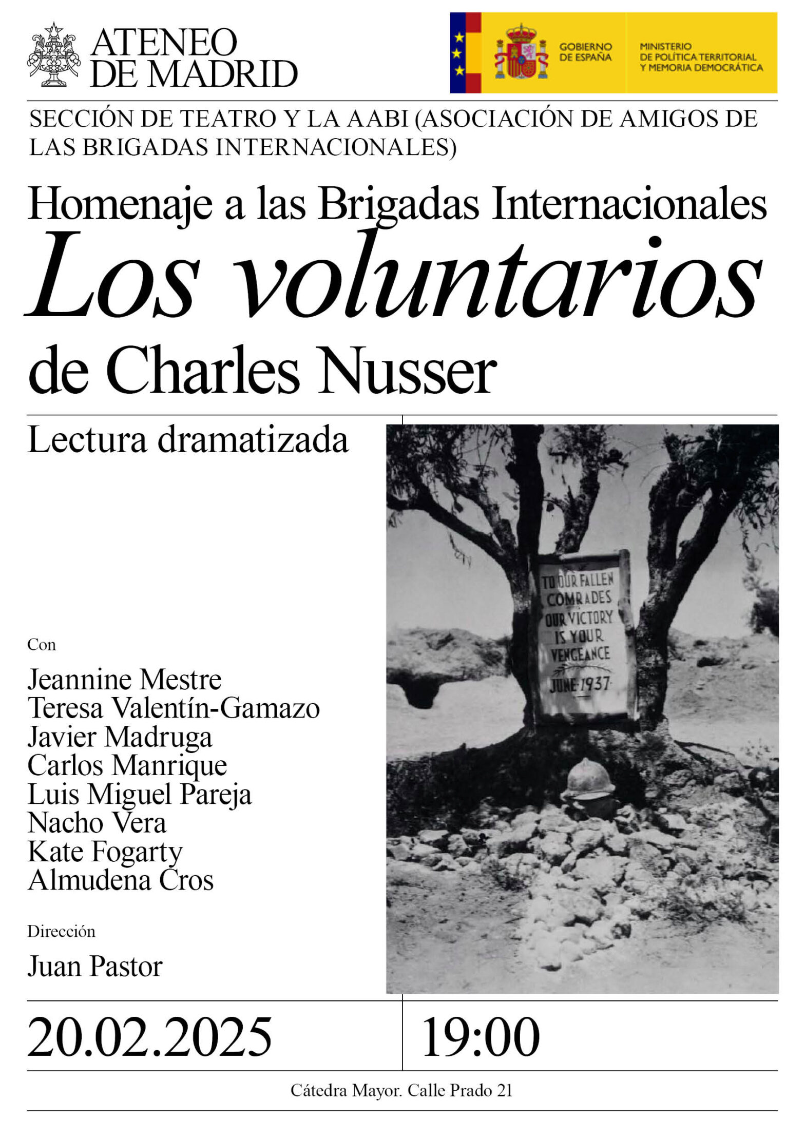 Este acto se enmarca dentro de las jornadas que organiza la AABI (Asociación de Amigos de las Brigadas Internacionales) bajo el título XVII Marcha del Jarama dedicada a los voluntarios del Batallón Lincoln, y se realiza gracias a la ayuda del Ministerio de Política Territorial y Memoria Democrática y a la colaboración del Ateneo de Madrid.