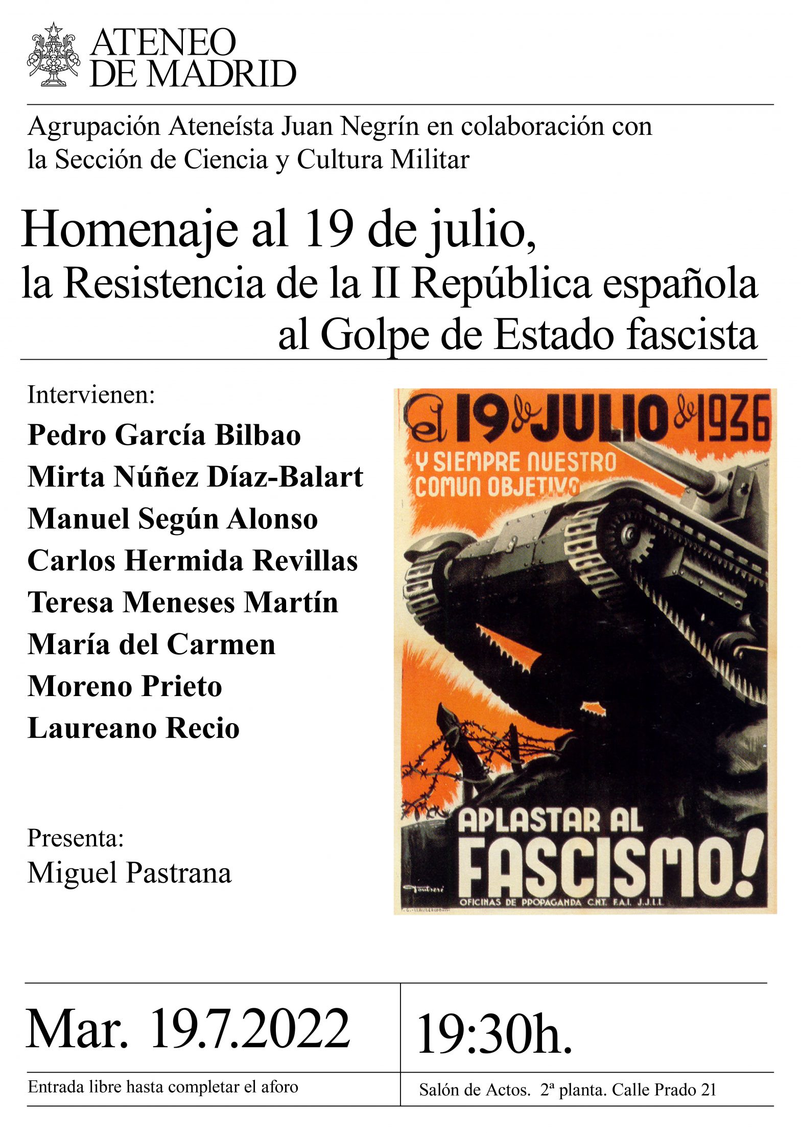 Homenaje al 19 de julio, la Resistencia de la II República española al Golpe de Estado fascista