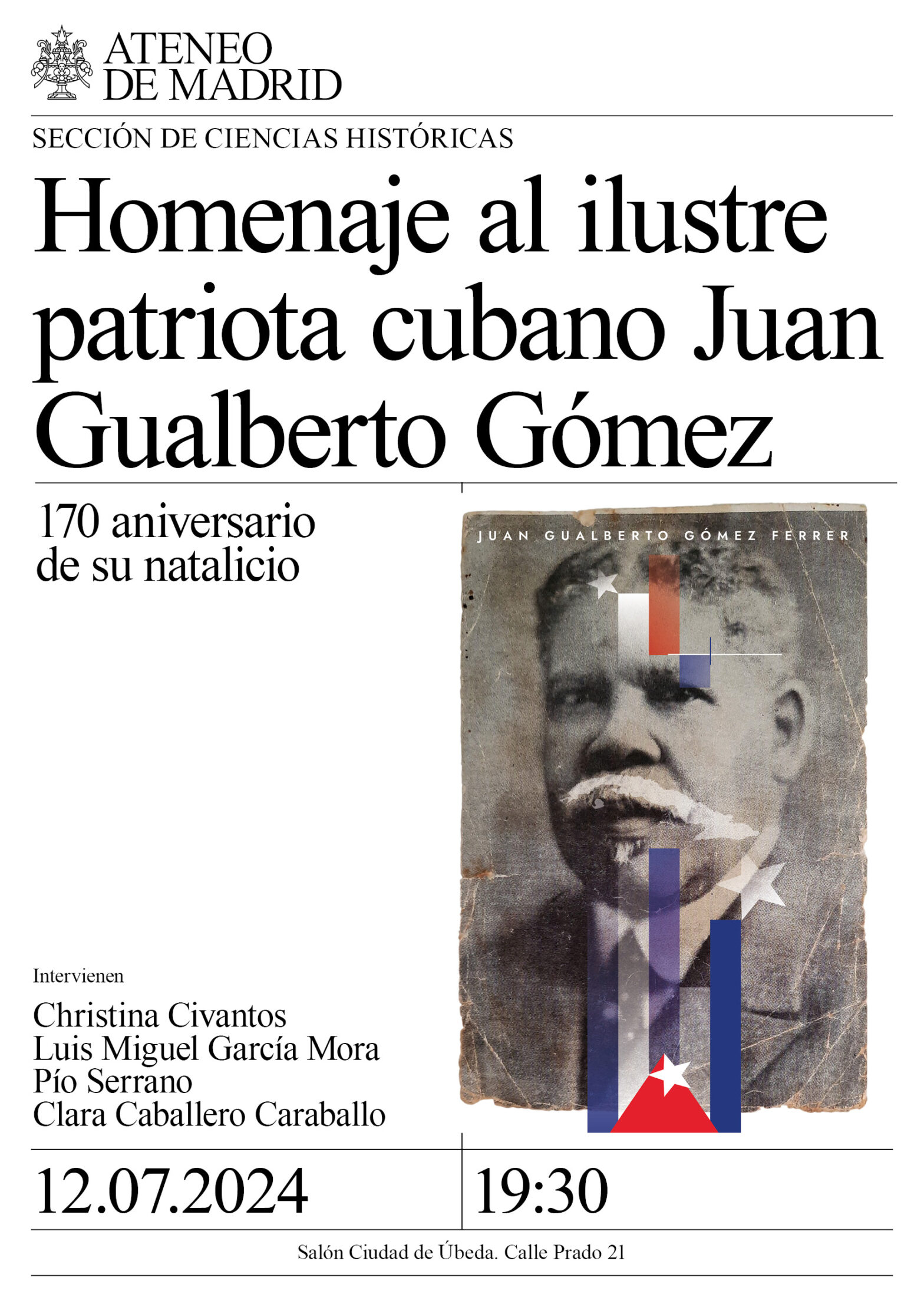Intervienen: Christina Civantos, doctora en Literatura Comparada por la Universidad de California en Berkeley; Luis Miguel García Mora, investigador de Mapfre; Pío Serrano, poeta, escritor y editor cubano; Clara Caballero Caraballo, bisnieta y estudiosa del legado de Juan Gualberto Gómez. Salón Ciudad de Úbeda. 19:30h.