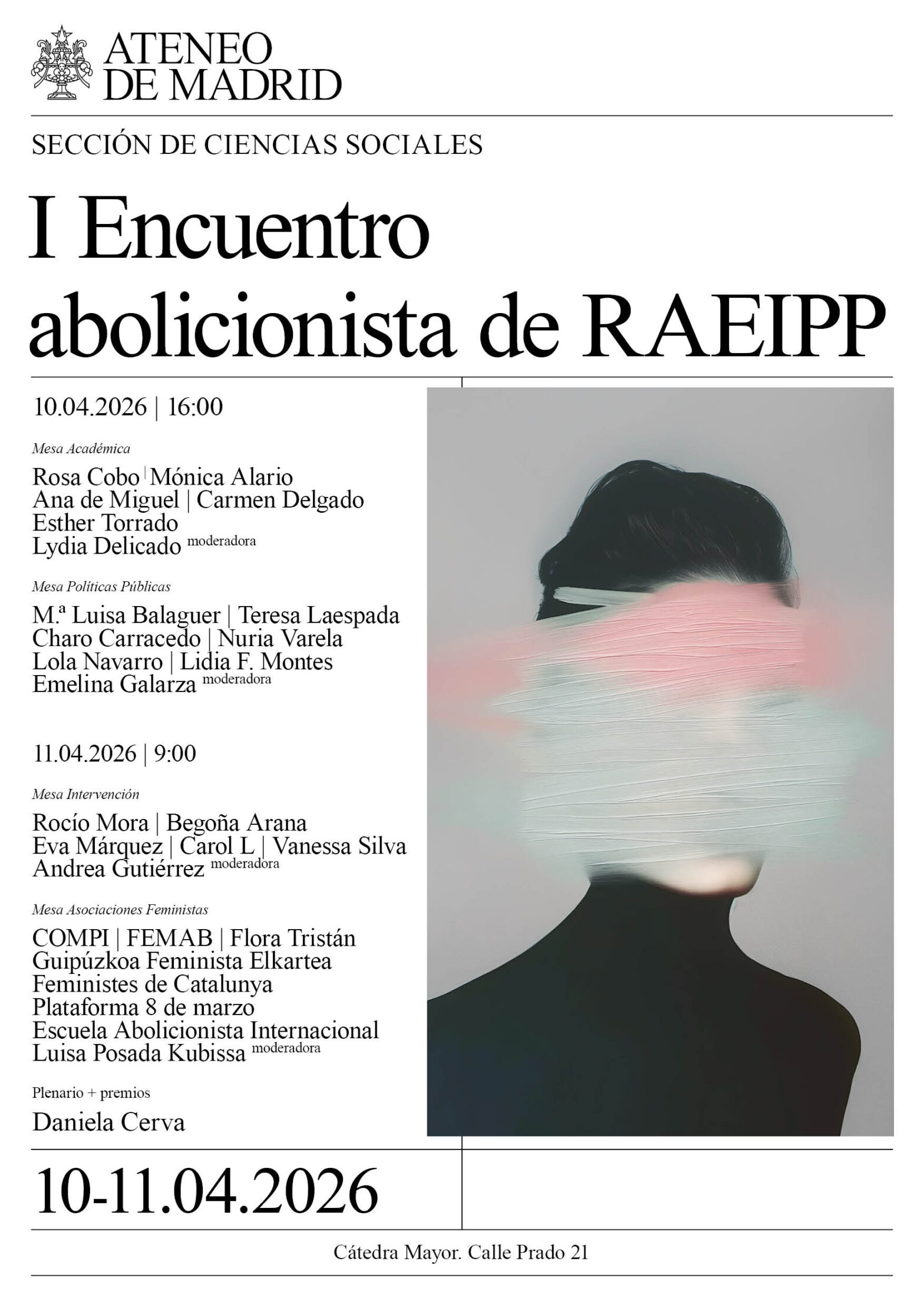 Mesa Asociaciones Feministas: COMPI, FEMAB, Flora Tristán, Guipúzkoa Feminista Elkartea, Feministes de Catalunya, Plataforma 8 de marzo y Escuela Abolicionista Internacional. Modera: Luisa Posada Kubissa, UCM. RAIEPP