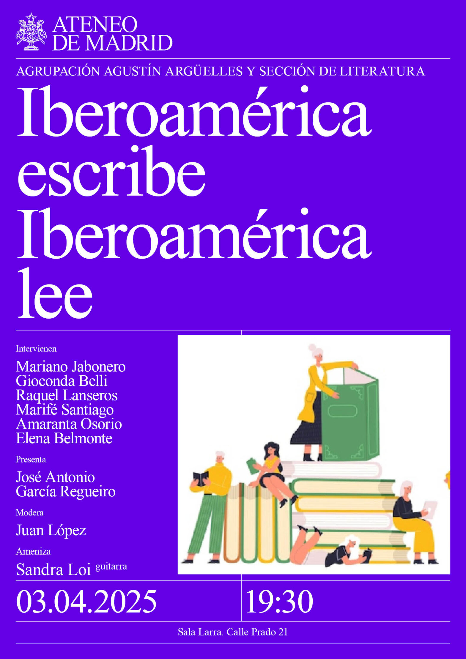 Intervienen: Mariano Jabonero, secretario general de la Organización de Estados Iberoamericanos; Gioconda Belli, poeta y novelista; Raquel Lanseros, poeta y traductora; Marifé Santiago, filósofa y poeta; Amaranta Osorio, dramaturga; y Elena Belmonte, dramaturga. Bienvenida José Antonio García Regueiro. Modera Juan López. Ameniza Sandra Loi, música y compositora. Sala Larra. 19:30h.