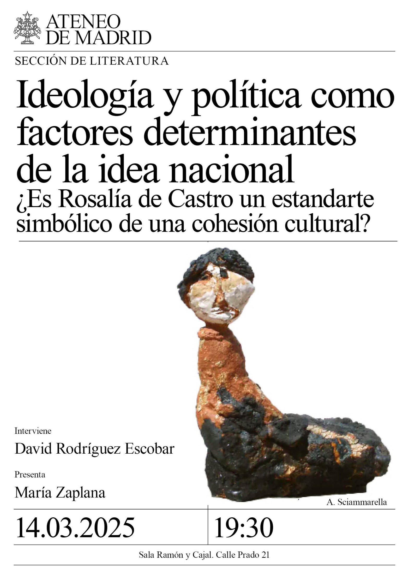Sección de Literatura. Interviene David Rodríguez Escobar. Presenta María Zaplana. Sala Ramón y Cajal. 19:30h.