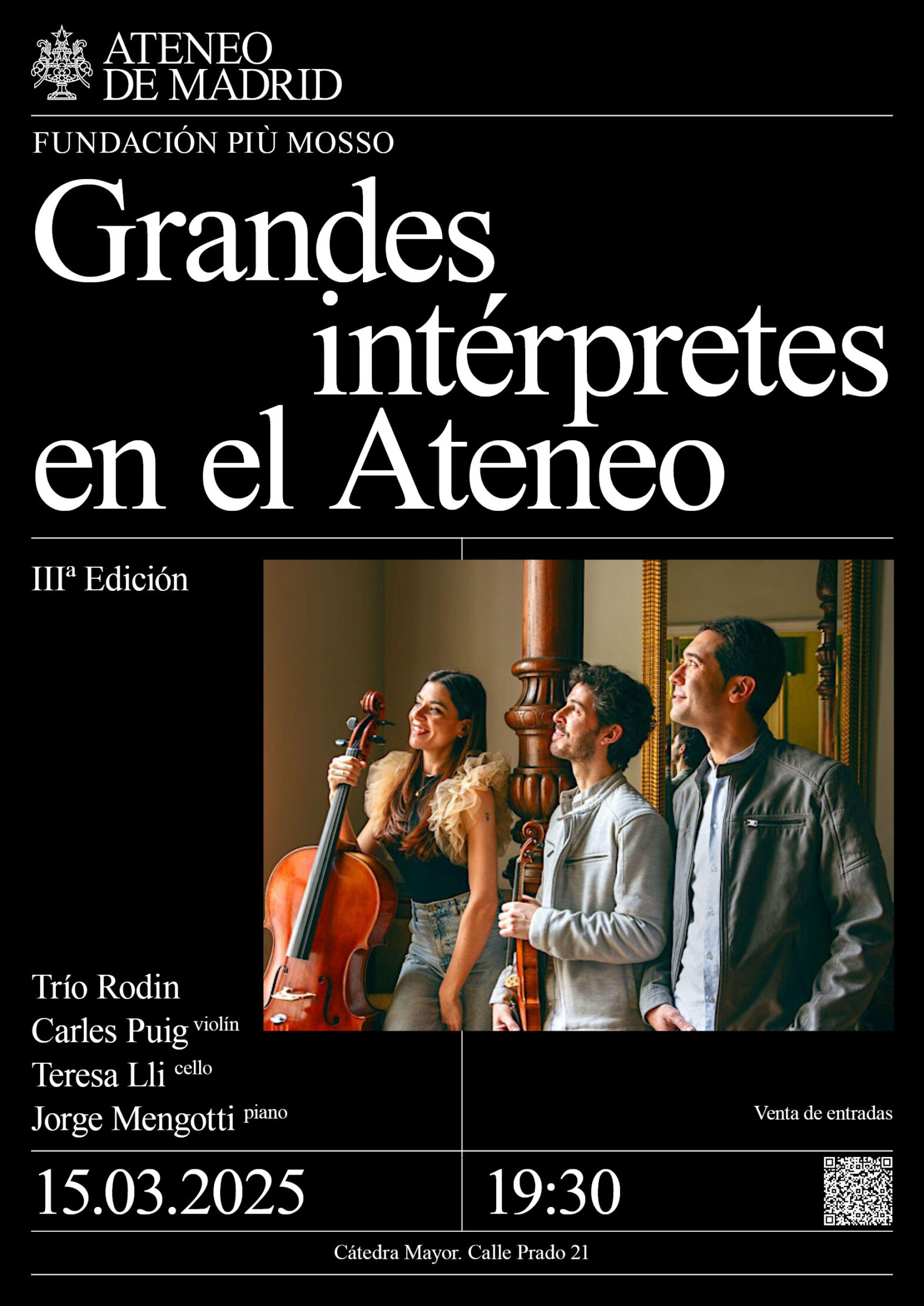 Trío Rodin: Carles Puig, violín, Teresa Lli, cello y Jorge Mengotti, piano. Cátedra Mayor. 19:30h.
