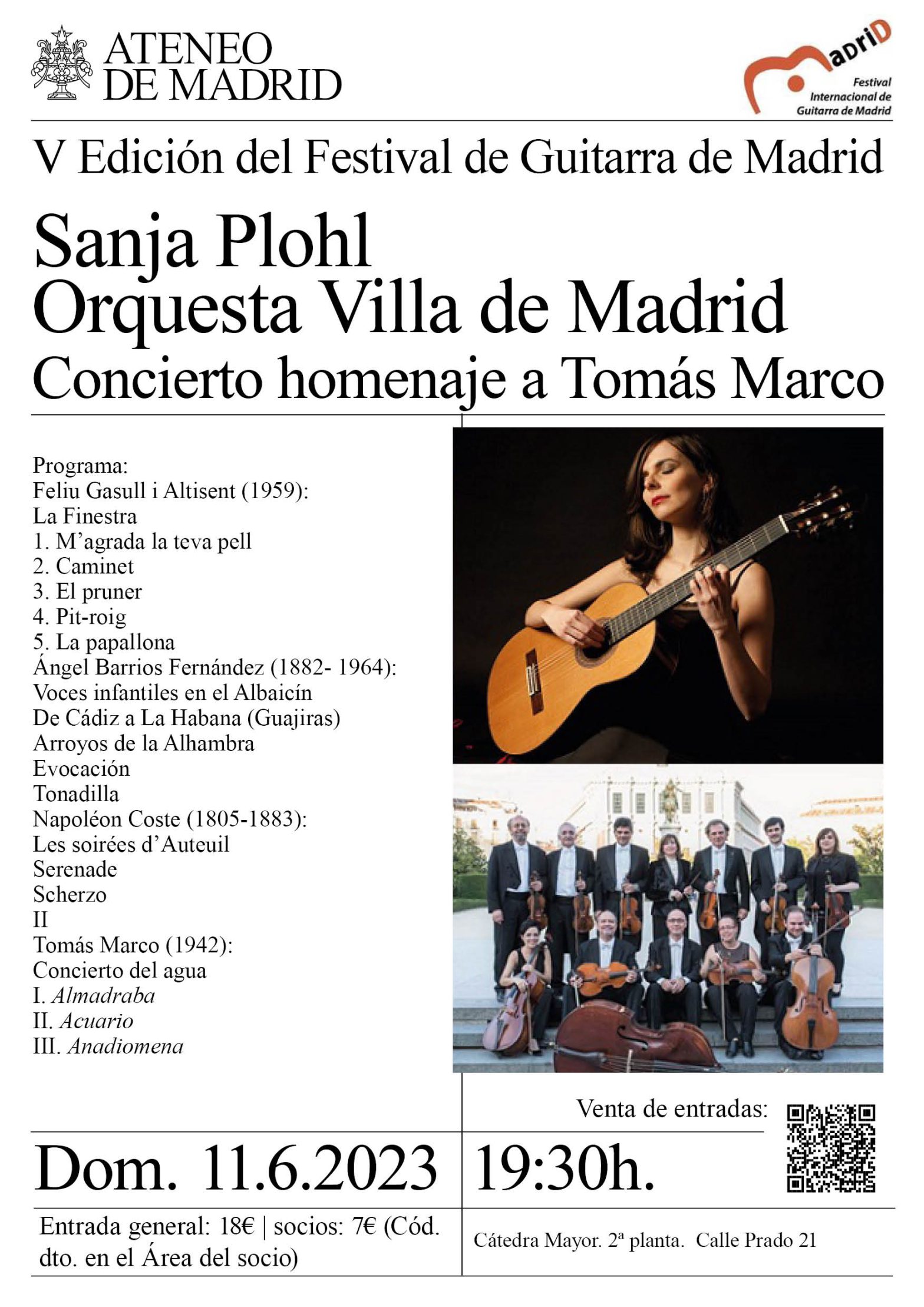 Sanja Plohl. Orquesta Villa de Madrid. Concierto homenaje a Tomás Marco