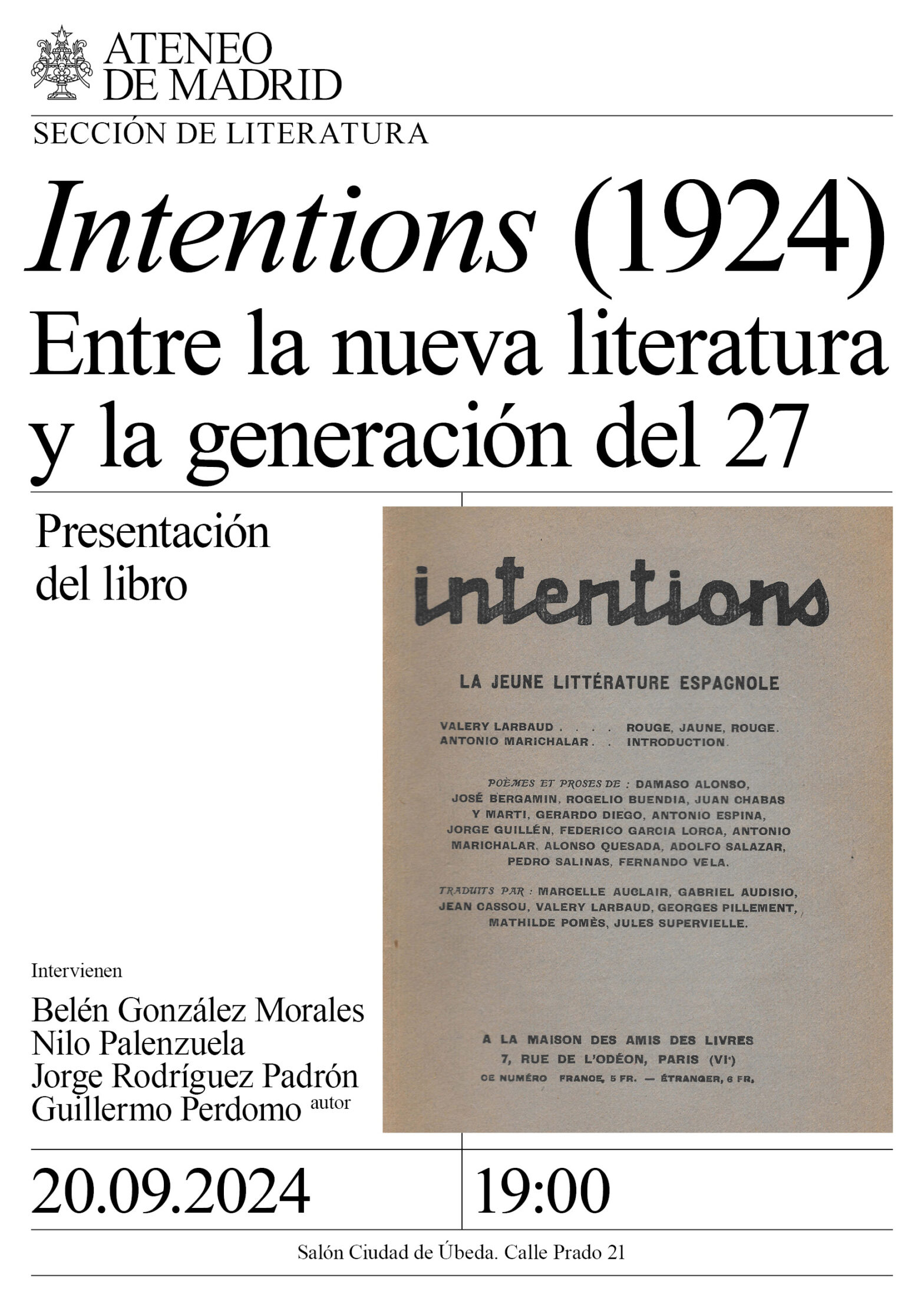 Sección de Literatura. Intervienen: Belén González Morales, Nilo Palenzuela, Jorge Rodríguez Padrón y Guillermo Perdomo, autor. Salón Ciudad de Úbeda. 19:00h.