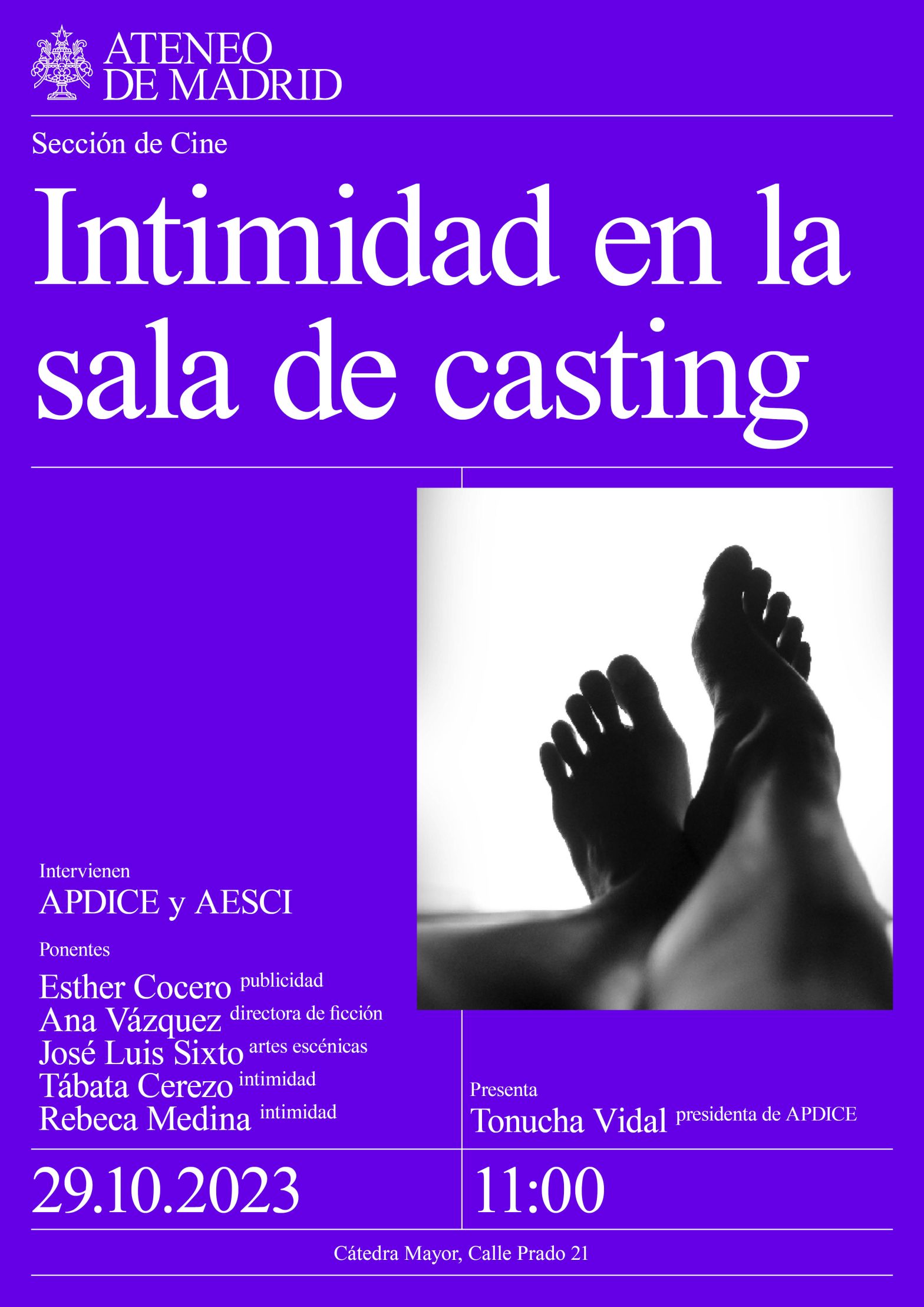 Sección de Cine: Intervienen (APDICE): Esther Cocero, publicidad; Ana Vázquez, directora de ficción; José Luis Sixto, de Artes Escénicas; Tábata Cerezo, intimidad; y Rebeca Medina, intimidad. Presenta Tonucha Vidal, presidenta de APDICE. Cátedra Mayor. 11h.