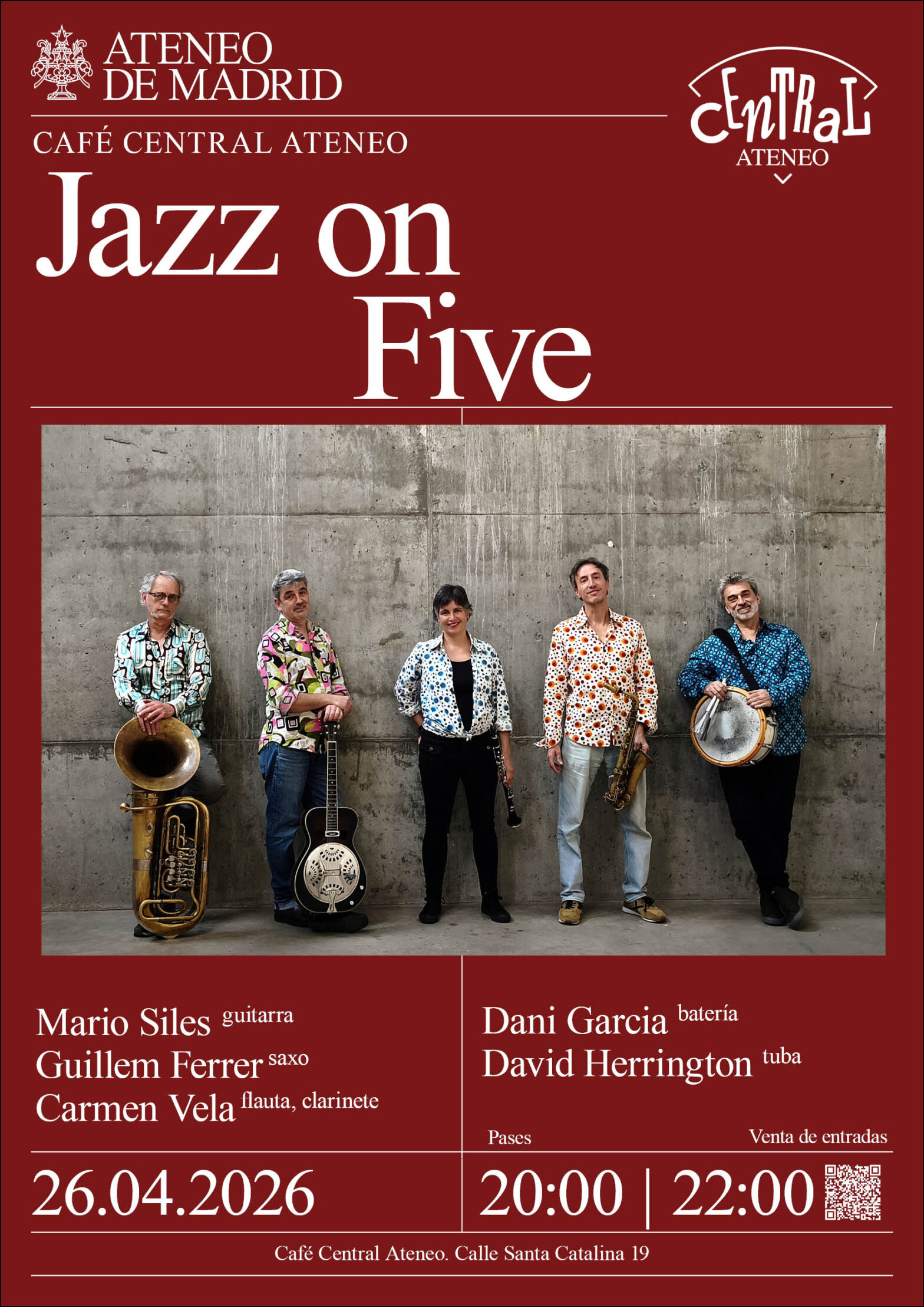 Café Central Ateneo. Mario Siles, guitarra; Guillem Ferrer, saxo; Carmen Vela; flauta, clarinete; Dani Garcia, batería; David Herrington, tuba. Santa Catalina, 19. Pases: 20:00h. y 22:00h.