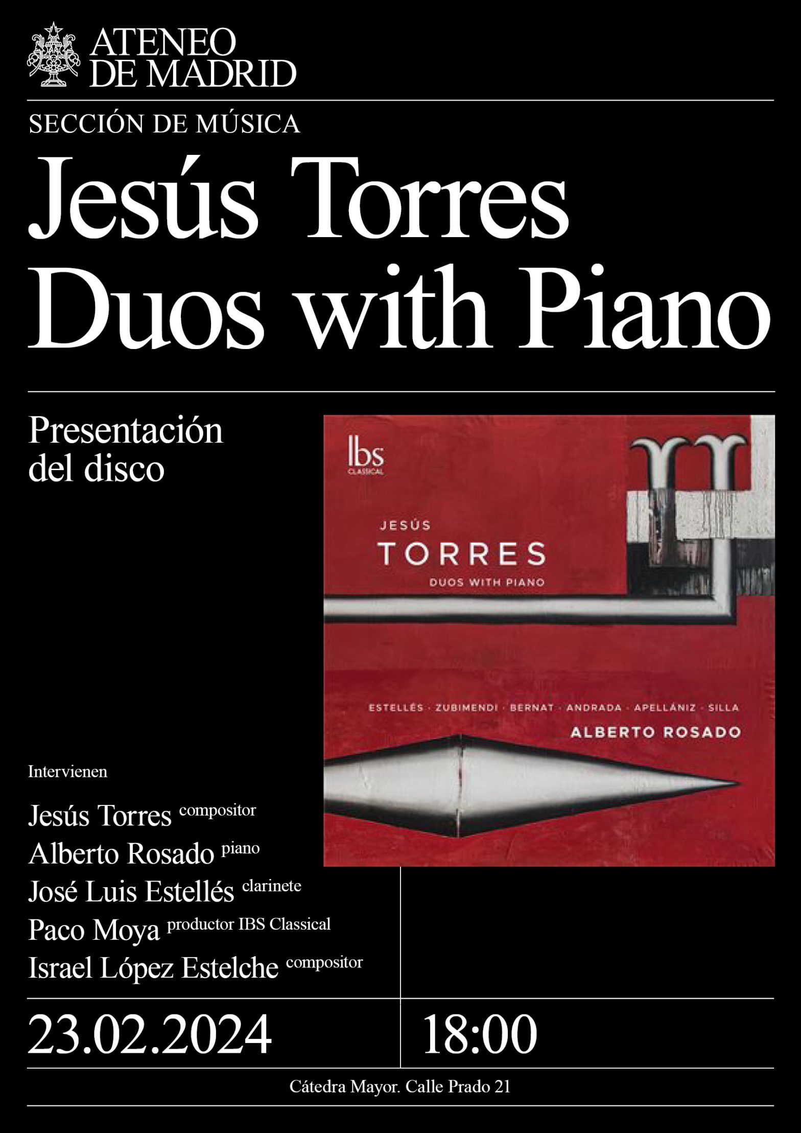 Sección de Música. Intervienen: Jesús Torres, compositor; Alberto Rosado, piano; José Luis Estellés, clarinete; Paco Moya, productor IBS Classical; e Israel López Estelche, compositor. Cátedra Mayor. 18:00h.