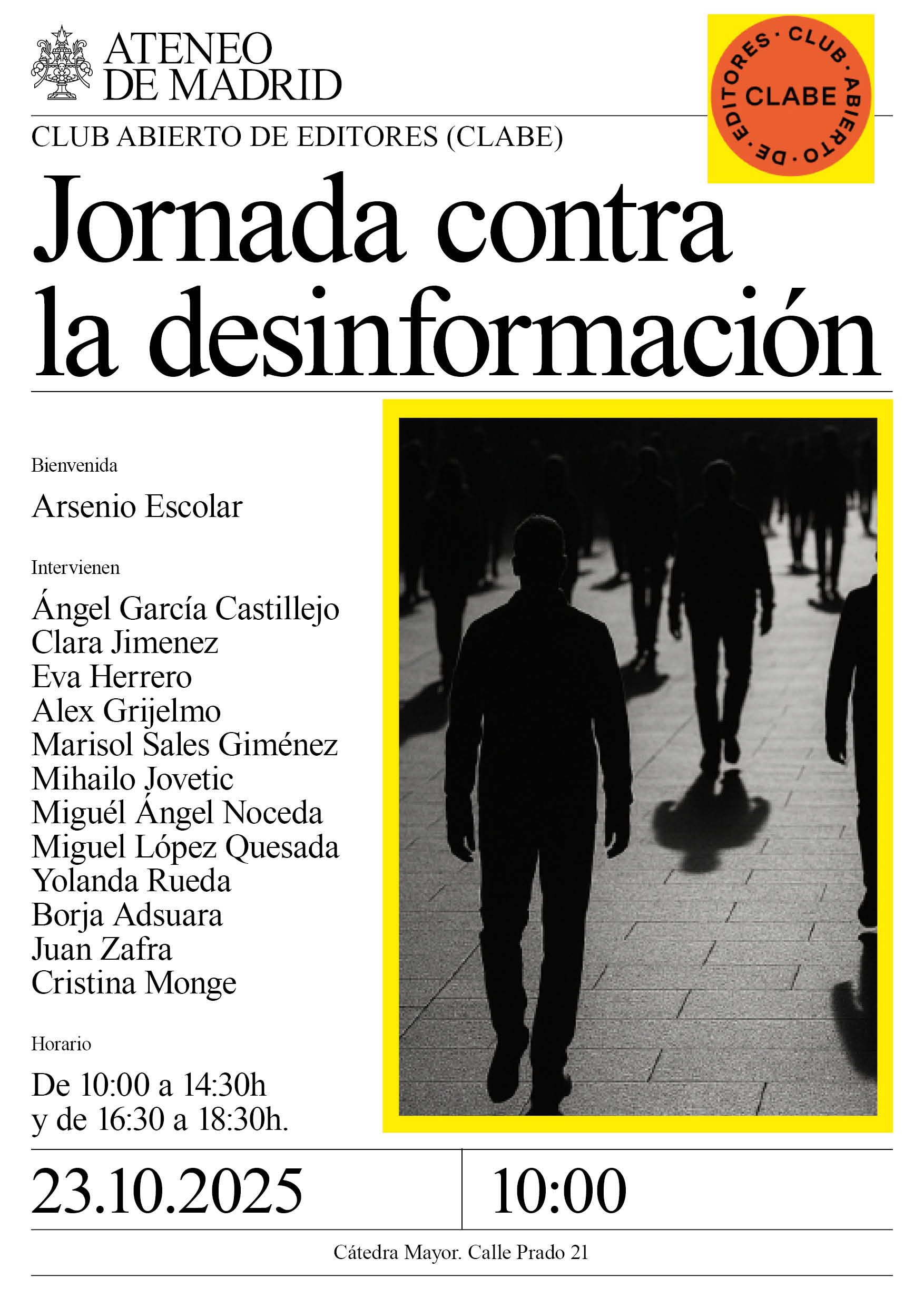 Club Abierto de Editores (CLABE). Bienvenida: Arsenio Escolar. Intervienen: Ángel García Castillejo, Clara Jimenez, Eva Herrero, Alex Grijelmo, Marisol Sales Giménez, Mihailo Jovetic, Miguél Ángel Noceda, Miguel López Quesada, Yolanda Rueda, Borja Adsuara, Juan Zafra y Cristina Monge. Cátedra Mayor. 10:00h.