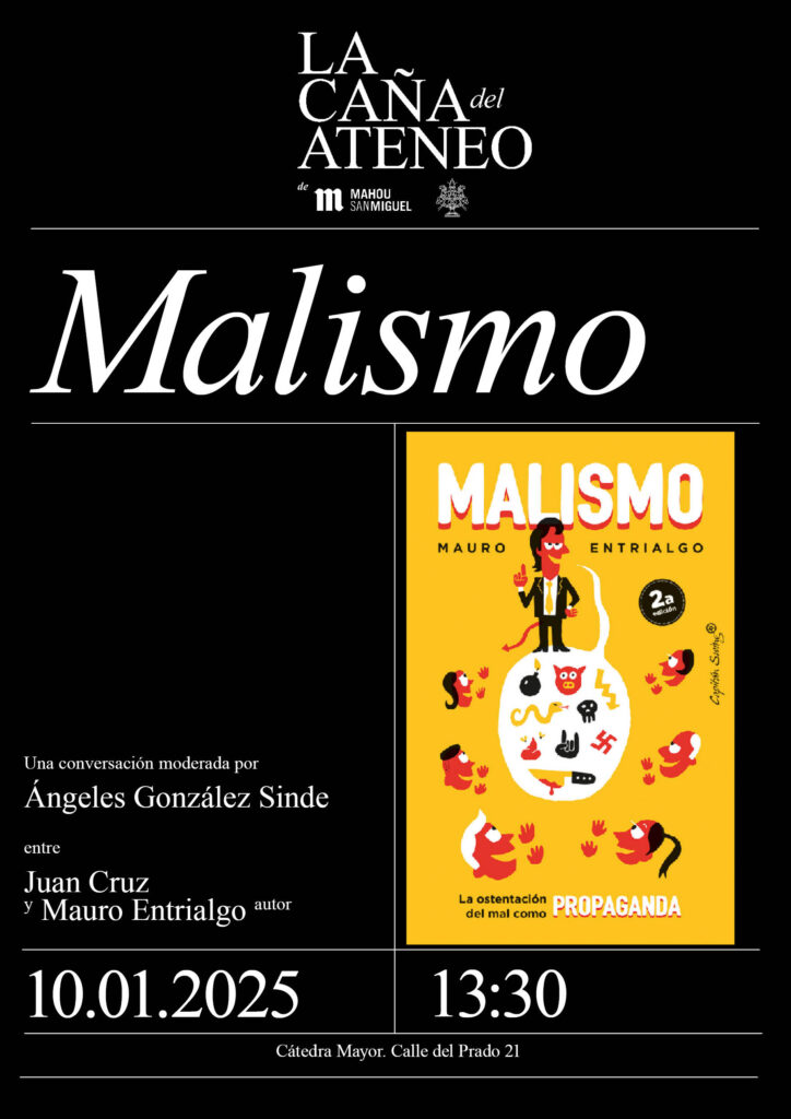 Una conversación moderada por Ángeles González Sinde entre Juan Cruz y Mauro Entrialgo a propósito de su libro Malismo y sus consecuencias en el ámbito cultural de nuestro país.
