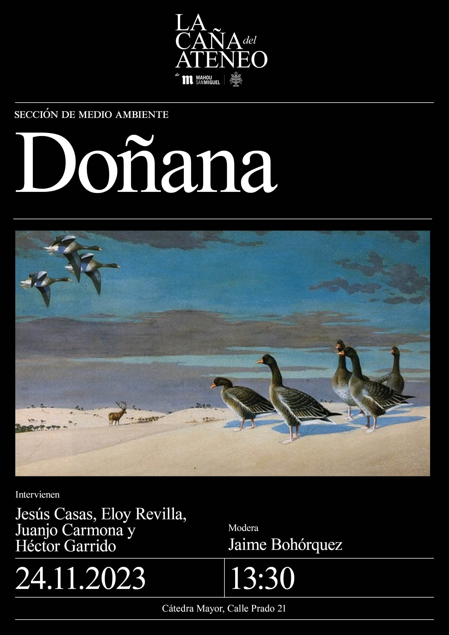 Sección de Medio Ambiente. Intervienen: Jesús Casas, exdirector P.N. Doñana. Eloy Revilla, director EBD Doñana. Juanjo Carmona, WWF Adena. Héctor Garrido, divulgador Doñana. Modera: Jaime Bohórquez. Cátedra Mayor. 13:30h.