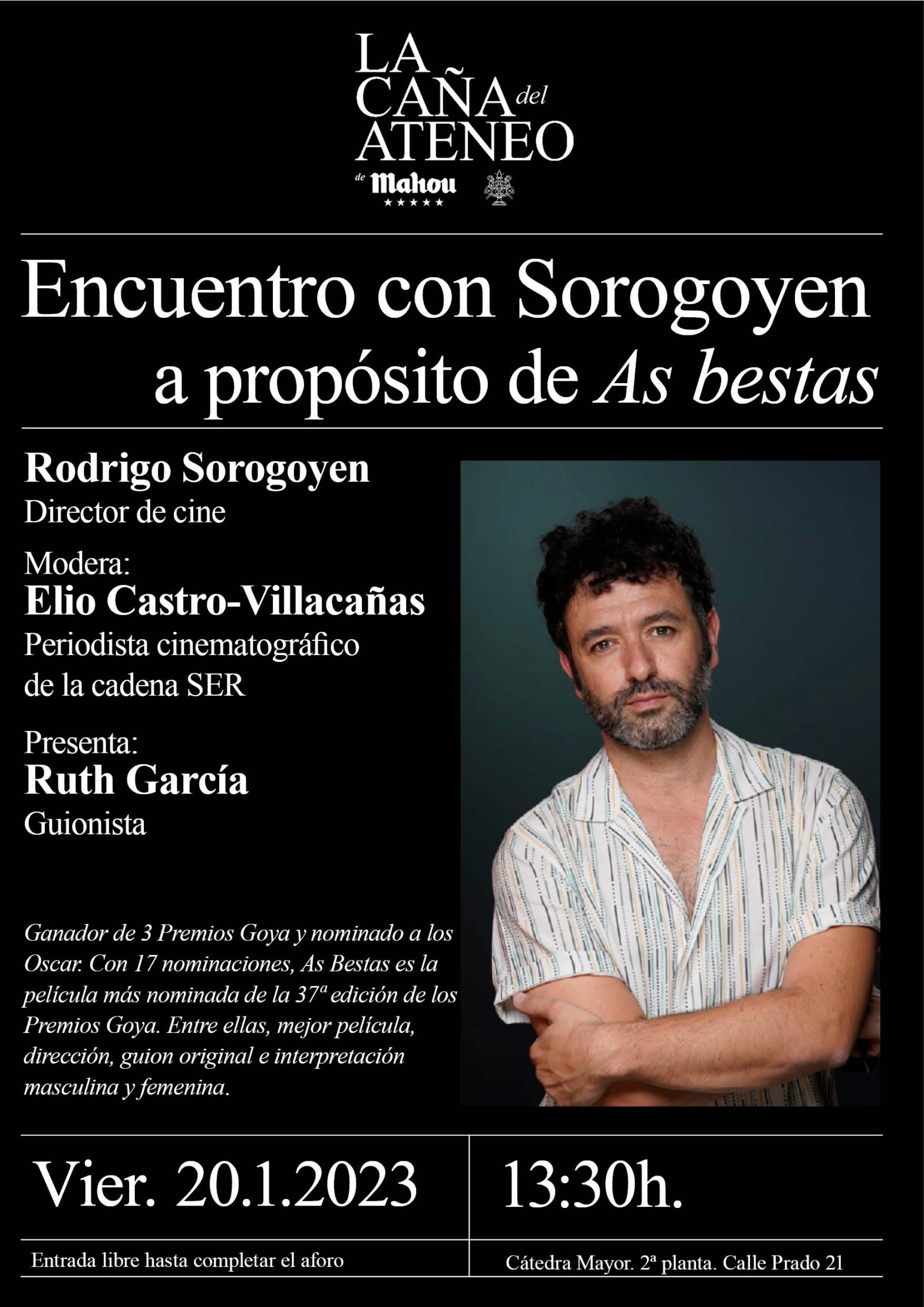 La Caña del Ateneo. Encuentro con Sorogoyen, a propósito de «As bestas»