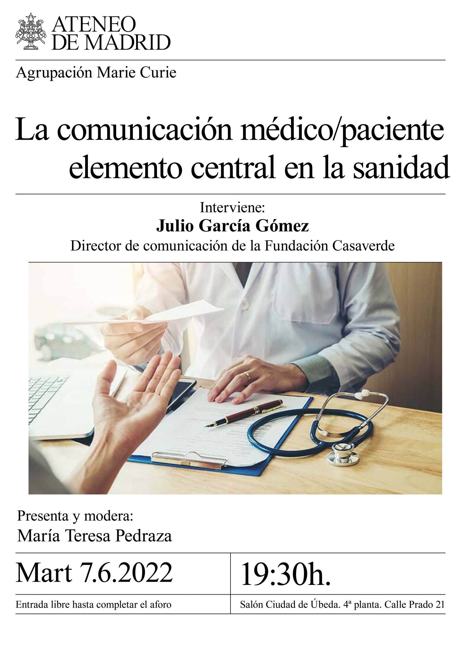 Agrupación Marie Curie. Interviene Julio García Gómez, director de comunicación de la Fundación Casaverde. Presenta y modera María Teresa Pedraza. Salón Ciudad de Úbeda. 19.30 h.