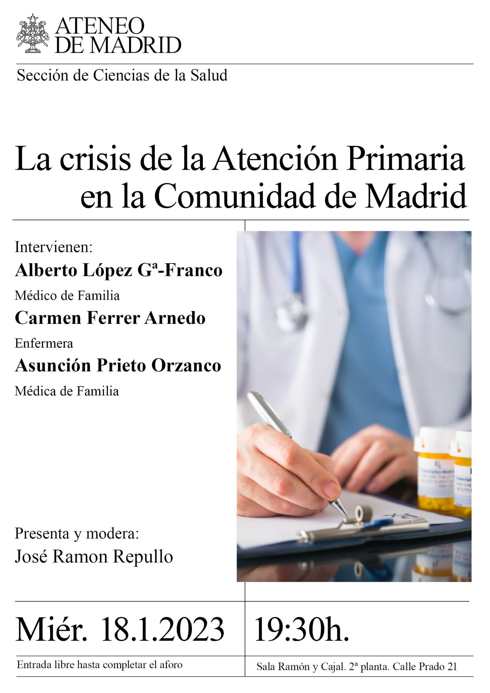 Sección Ciencias de la Salud. Intervienen: Alberto López Gª-Franco, médico de Familia; Carmen Ferrer Arnedo, enfermera; Asunción Prieto Orzanco, médica de Familia. Presenta y modera: José Ramon Repullo. Ramón y Cajal. 19:30h.