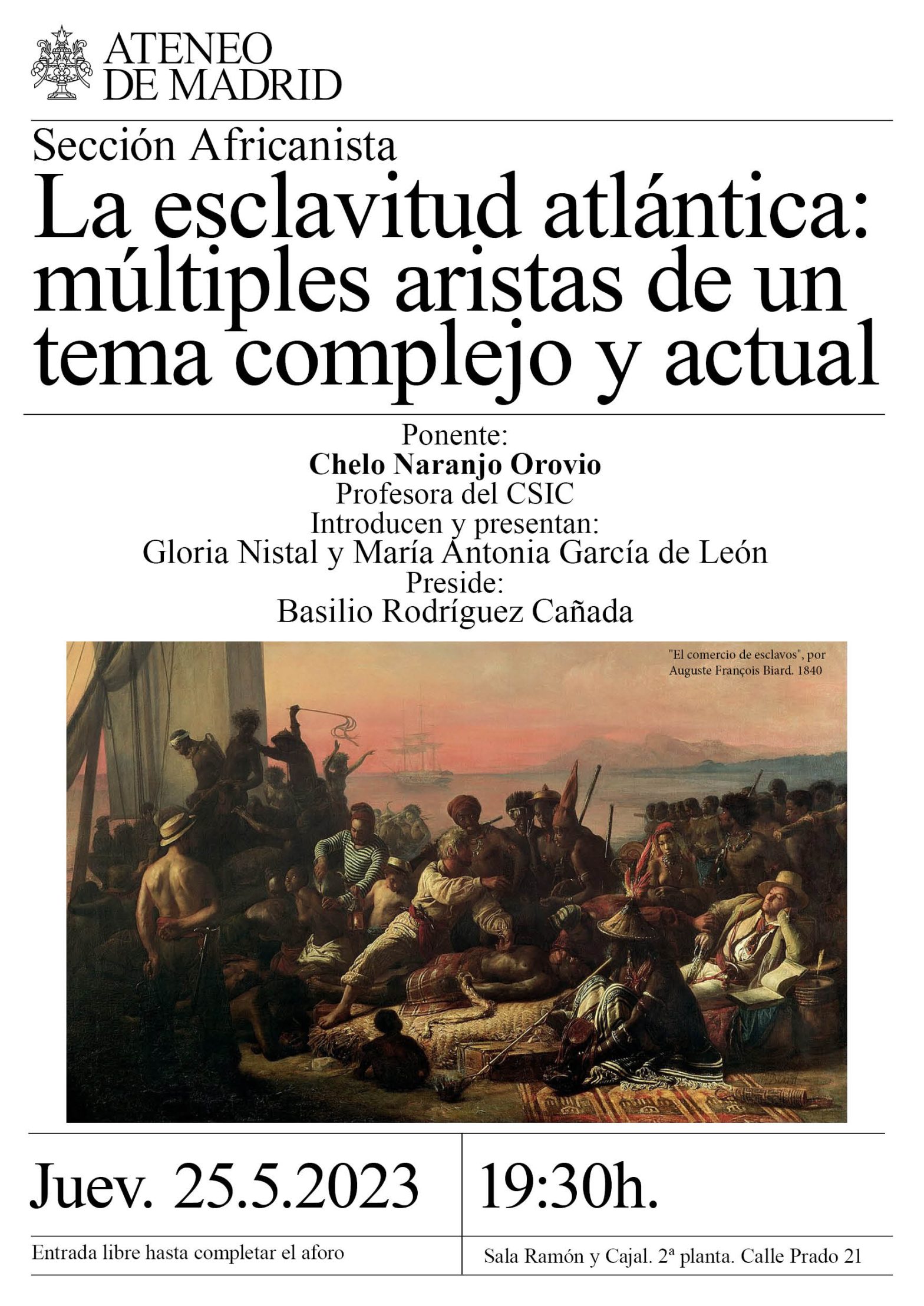 Sección Africanista. Ponente: Chelo Naranjo Orovio, profesora del CSIC. Introducen y presentan: Gloria Nistal y María Antonia García de León. Preside Basilio Rodríguez Cañada. Sala Ramón y Cajal. 19:30h.