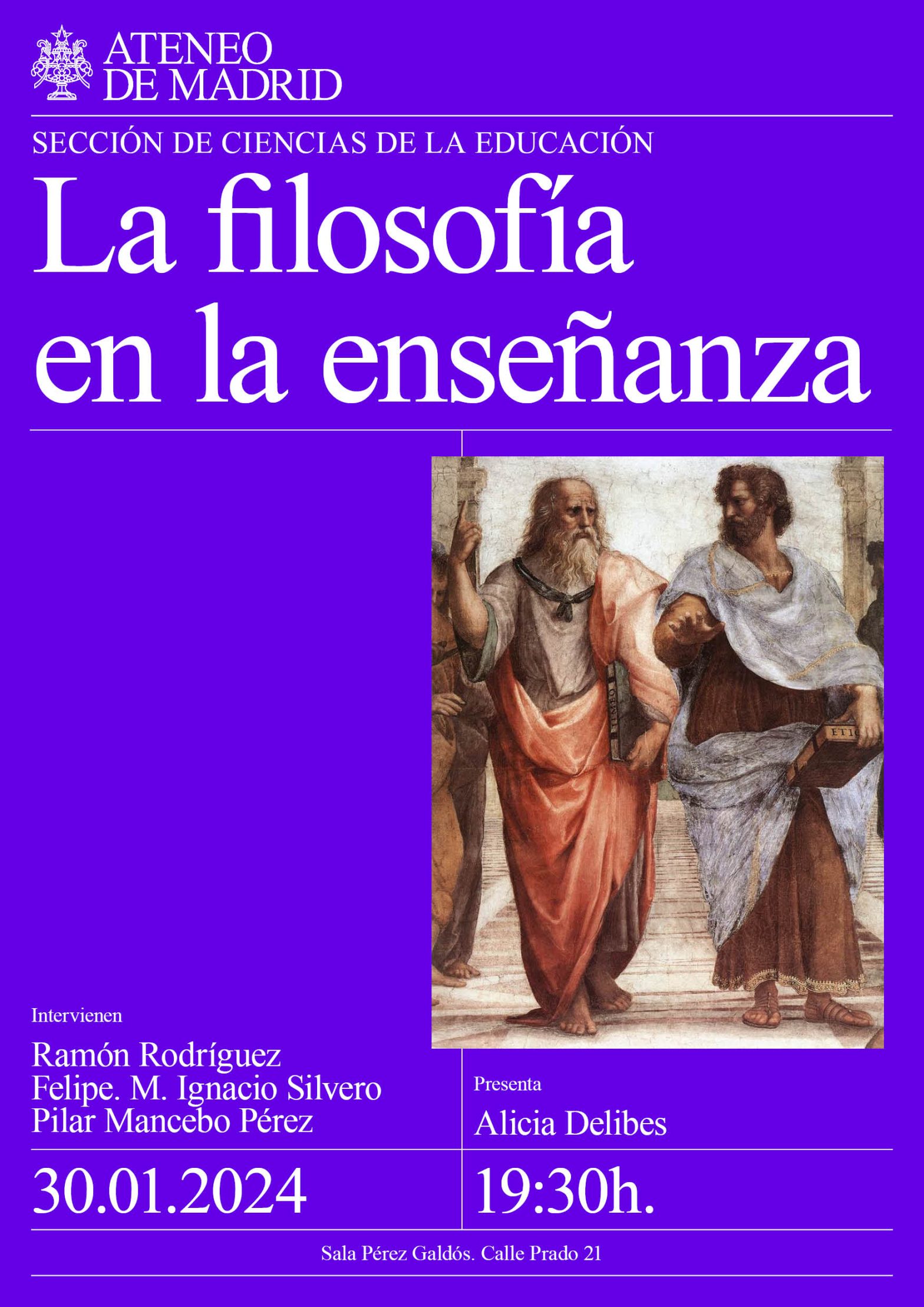 Sección de Ciencias de la Educación. Intervienen: Ramón Rodríguez catedrático emérito de la UCM Felipe M. Ignacio Silvero profesor asociado UCM Pilar Mancebo Pérez profesora de Enseñanza Secundaria Sala Pérez Galdós. 19:30h.