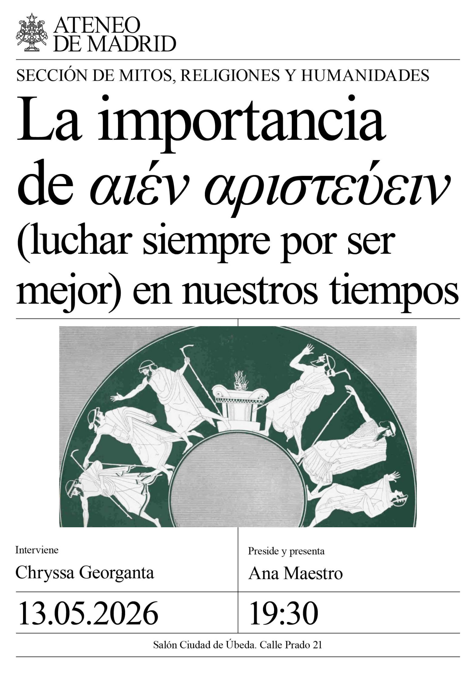 Interviene: Sección de Mitos, Religiones y Humanidades. Interviene: Georganta, directora de escena, magister UPV. Preside y presenta: Ana Maestro. Salón Ciudad de Úbeda. 19:30h.