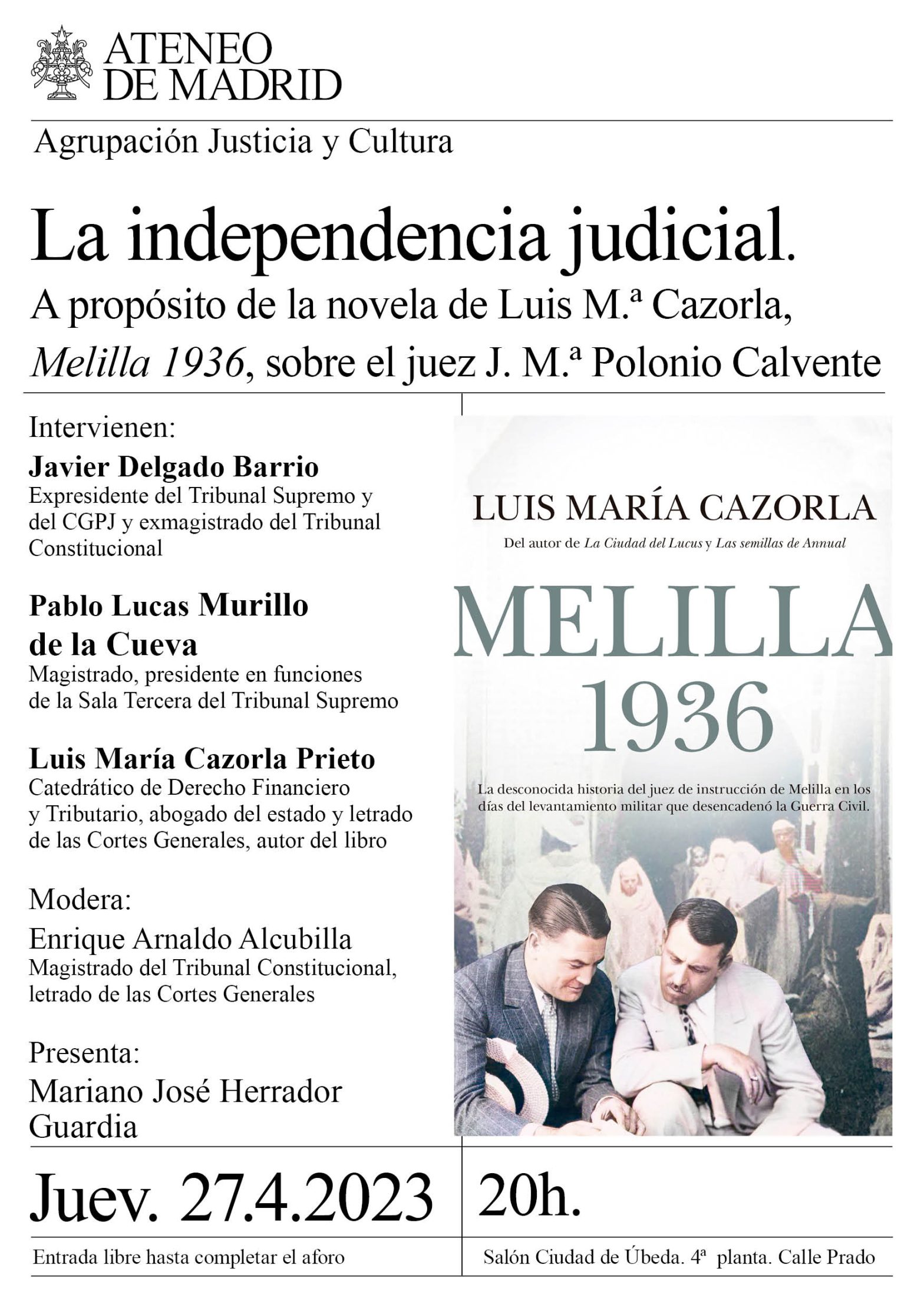 La independencia judicial. A propósito de la novela de Luis M.ª Cazorla, Melilla 1936, sobre el juez J. M.ª Polonio Calvente
