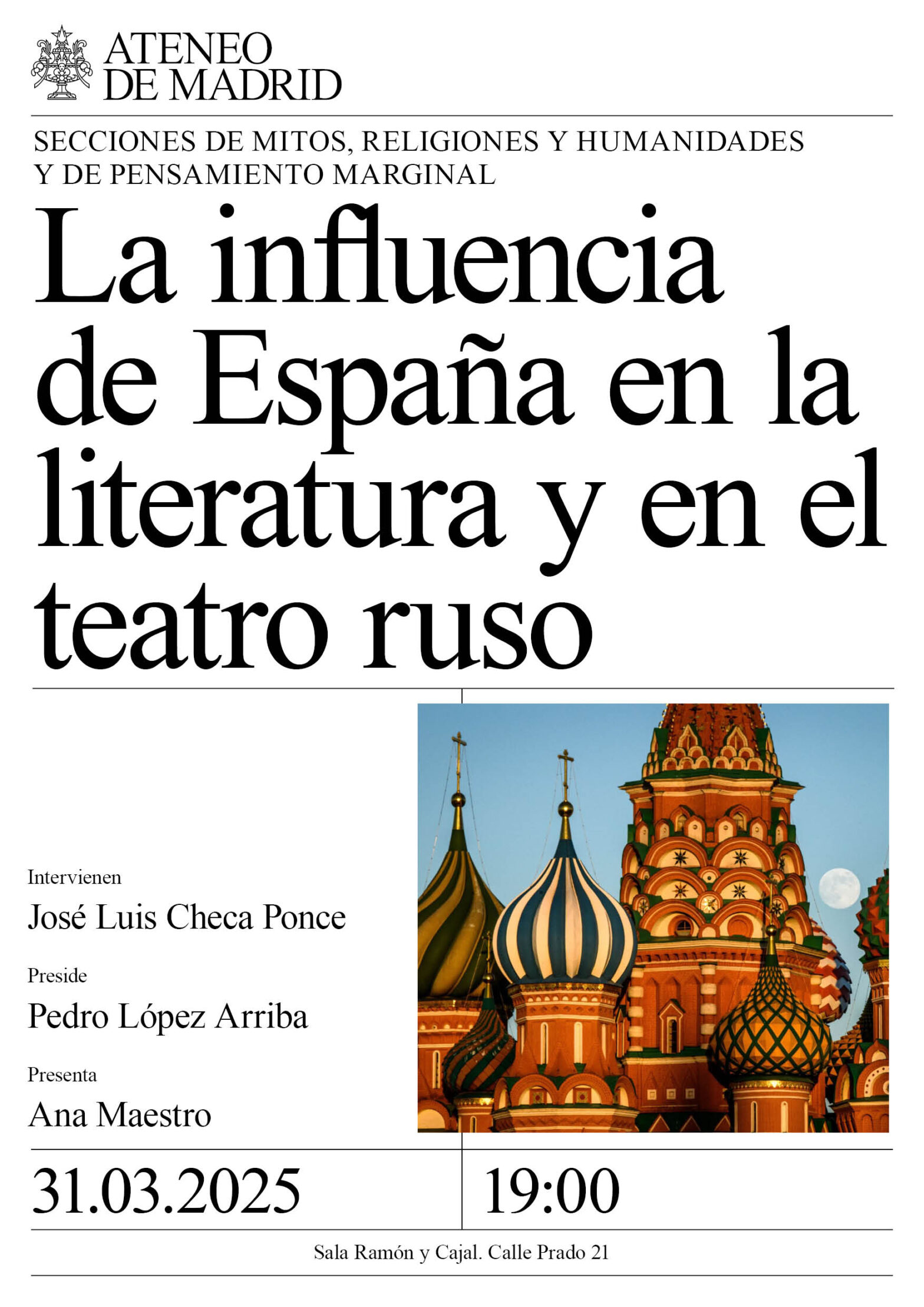 Secciones de Mitos, Religiones y Humanidades y de Pensamiento Marginal. Interviene José Luis Checa Ponce. Preside Pedro López Arriba. Presenta Ana Maestro. Sala Ramón y Cajal. 19:00h.