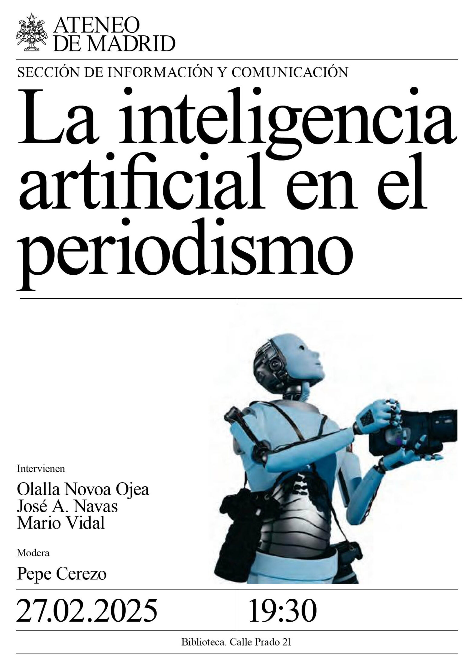 Sección de Información y Comunicación. Intervienen: Olalla Novoa Ojea, responsable de voz y smarth speakerd en las radios de PRISA Media; José A. Navas, responsable de suscripciones de El Confidencial; Mario Vidal, jefe de innovación de El Español. Modera: Pepe Cerezo, fundador del Think Tank Digital Journey y director de la Biblioteca DJ. Biblioteca. 19:30h.