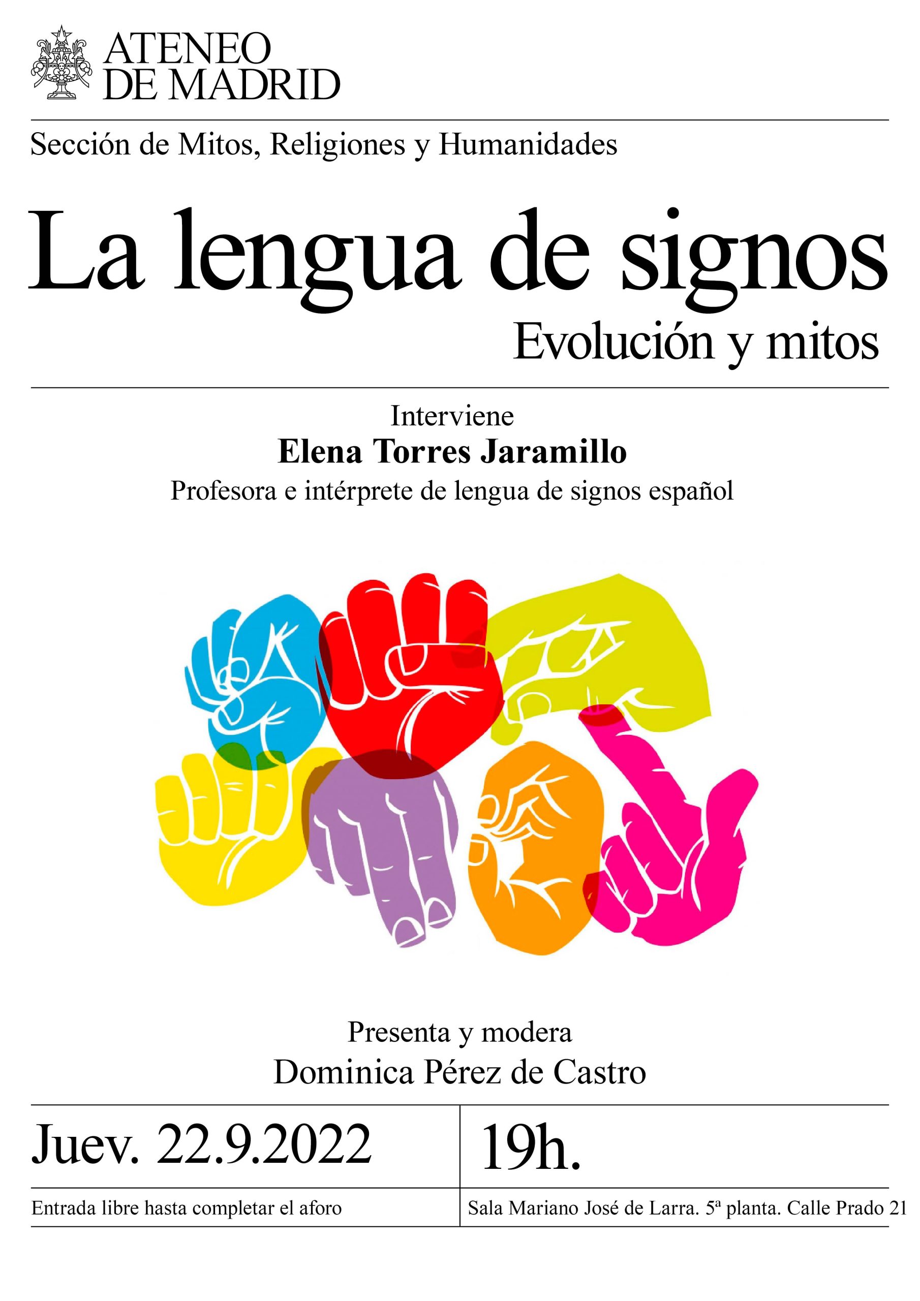 Sección Mitos, Religiones y Humanidades. Interviene Elena Torres Jaramillo, profesora e intérprete de lengua de signos española. Sala Mariano José de Larra.