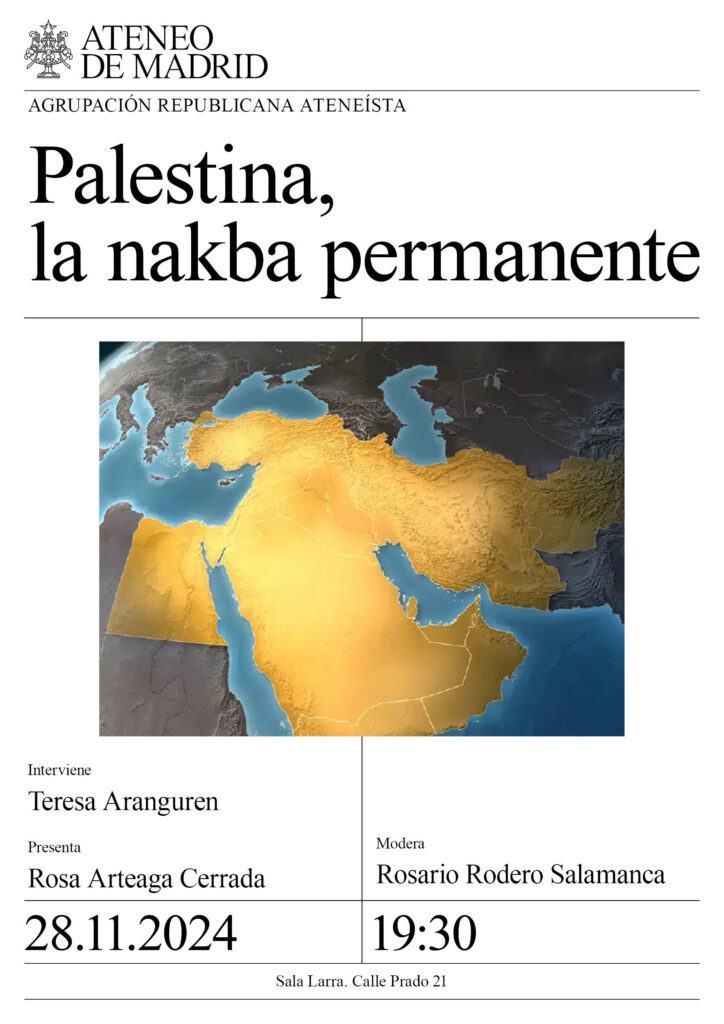 Agrupación Republicana. Interviene: Teresa Aranguren, escritora y periodista, especializada en el Oriente Próximo. Presenta: Rosa Arteaga Cerrada. Modera: Rosario Rodero Salamanca. 19:30h.