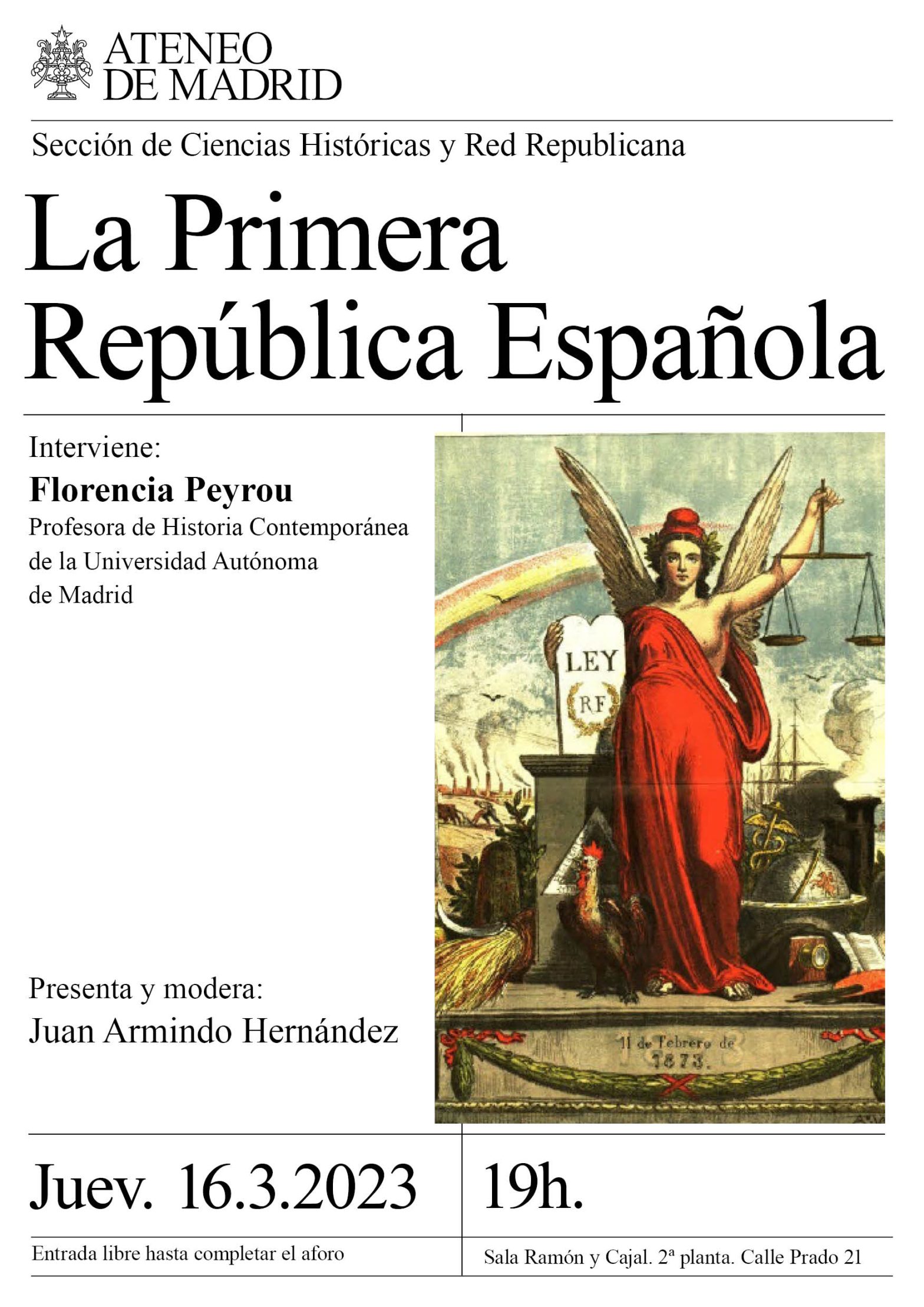Sección de Ciencias Históricas y Red Republicana. Interviene: Florencia Peyrou, profesora de Historia Contemporánea de la Universidad Autónoma de Madrid. Presenta y modera: Juan Armindo Hernández. Sala Ramón y Cajal. 19h.