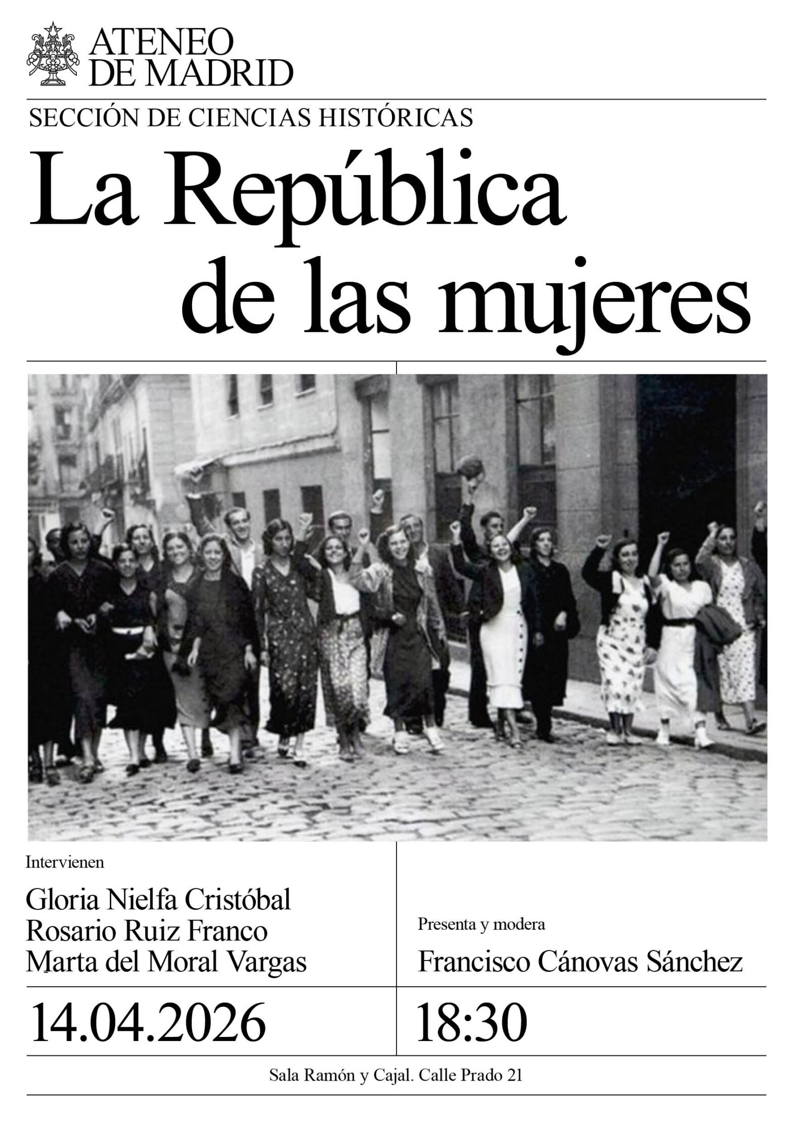 Sección de Ciencias Históricas. Intervienen: Gloria Nielfa Cristóbal, Rosario Ruiz Franco y Marta del Moral Vargas. Presenta y modera: Francisco Cánovas Sánchez. Sala Ramón y Cajal. 18:30h.