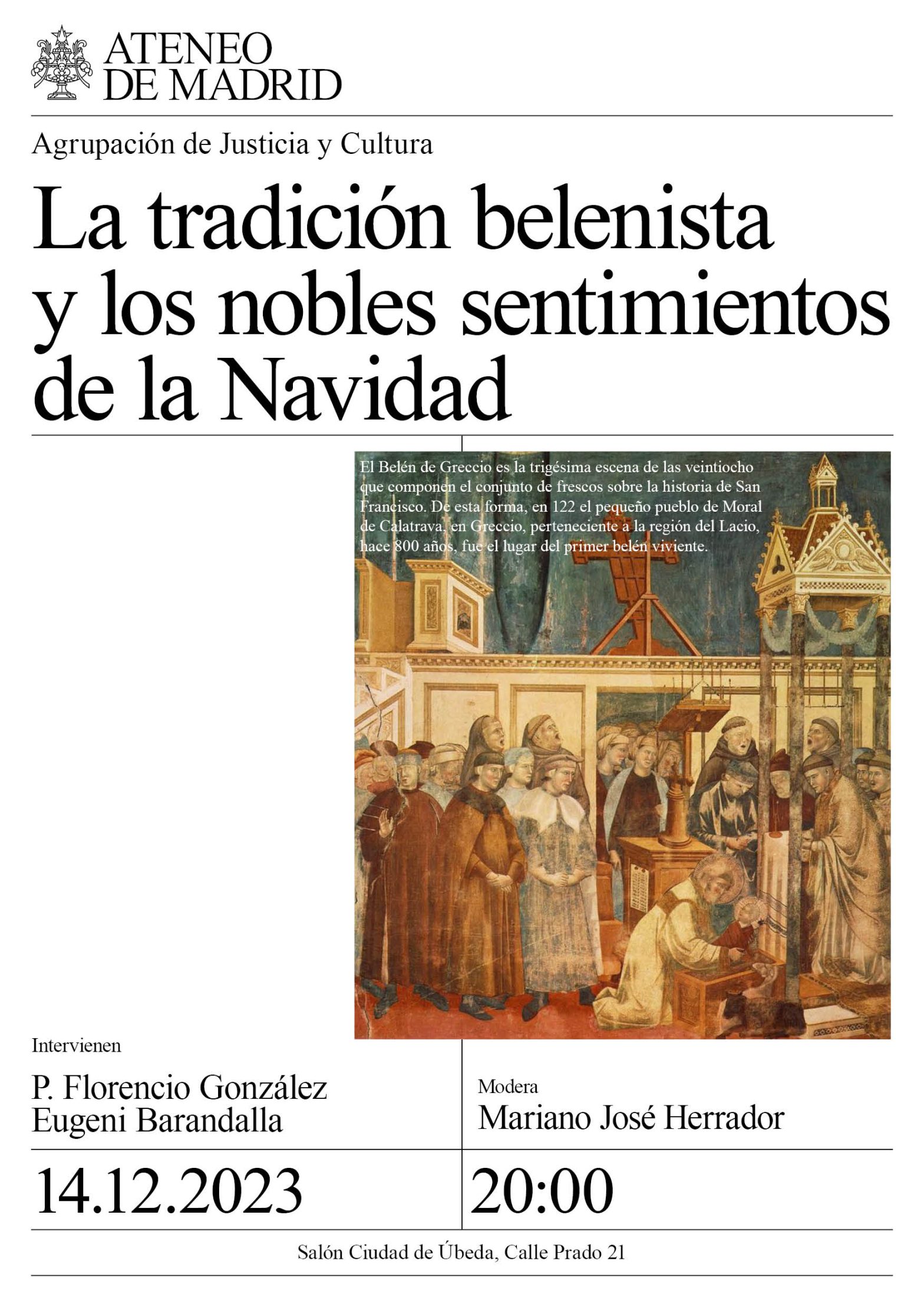 Agrupación de Justicia y Cultura. Intervienen: P. Florencio González fraile Franciscano y Eugeni Barandalla presidente de la Asociación de Belenistas de Madrid y secretario de la Federación Española de Belenistas Modera: Mariano José Herrador. Salón Ciudad de Úbeda. 20:00h.