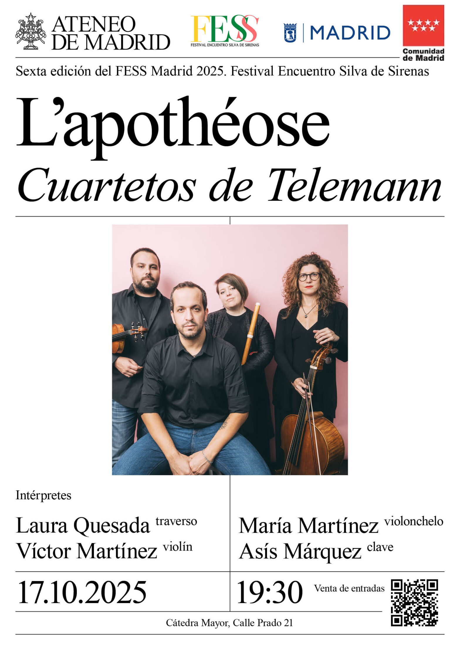 Intérpretes: Laura Quesada, traverso; Víctor Martínez, violín; María Martínez, violonchelo; y Asís Márquez, clave, Cátedra Mayor. 19:30h.