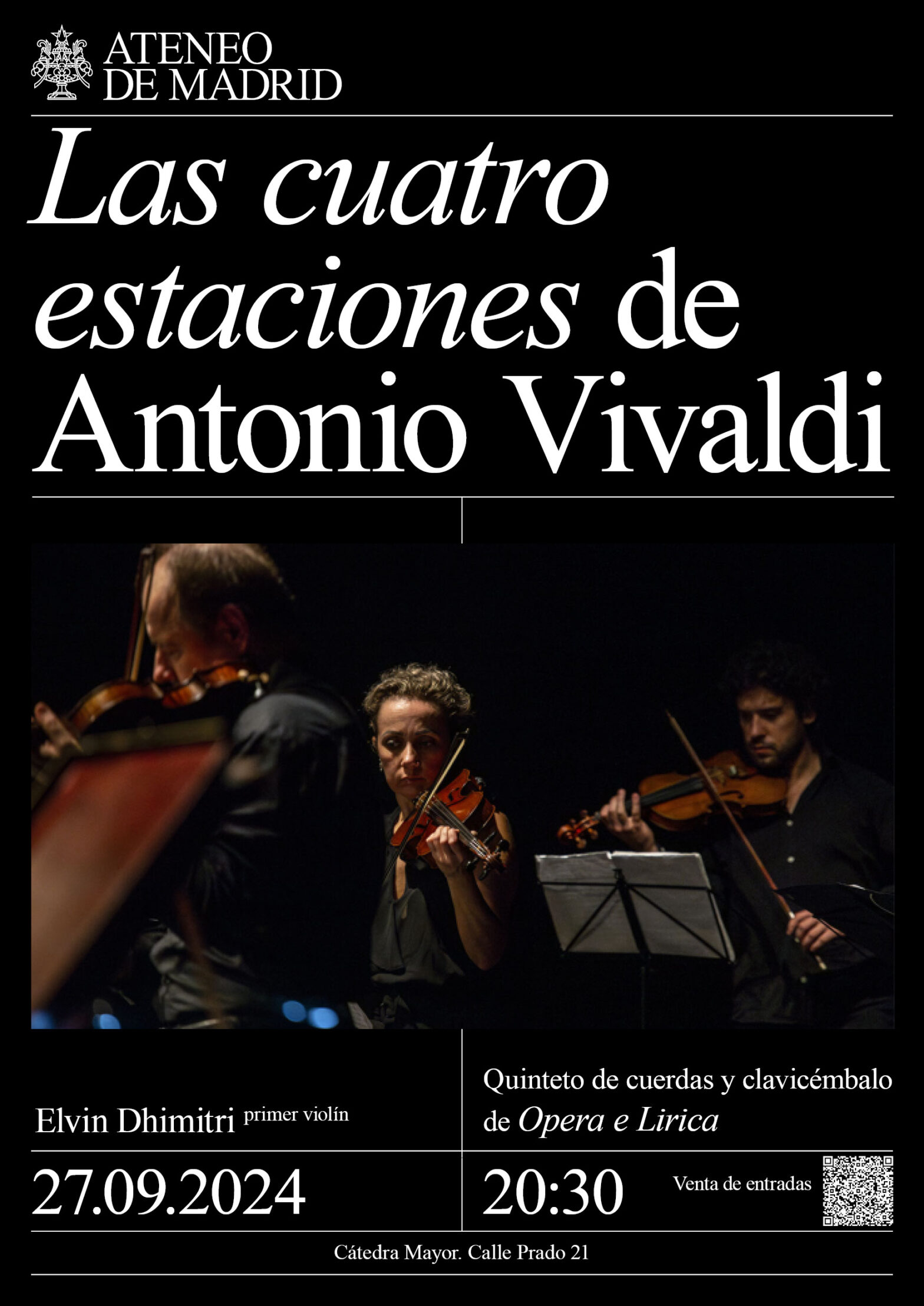 La música que representa los estados de ánimo de las cuatro estaciones siempre ha sido popular, y compositores barrocos como Werner y Fischer, entre otros, produjeron ciclos de conciertos que representan las cuatro estaciones. Pero ninguno lo hizo con detalles pictóricos tan precisos como Antonio Vivaldi en su concierto “Las Cuatro Estaciones”, que se representarán en la hermosa Cátedra Mayor del Ateneo de Madrid.