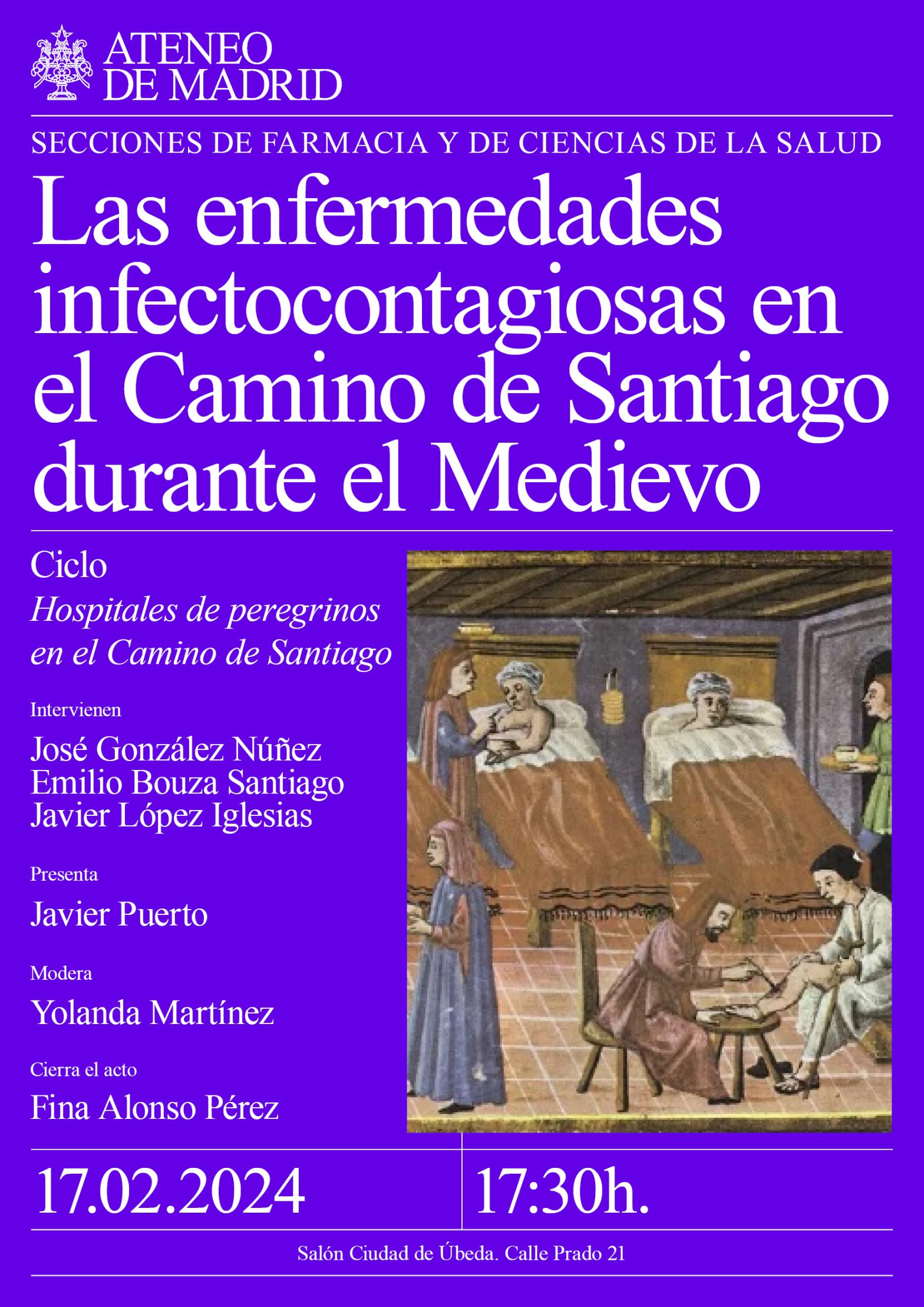Secciones de Farmacia y de Ciencias de la Salud. Presenta: Javier Puerto. Modera: Yolanda Martínez. Cierra el acto: Fina Alonso Pérez. Programa: Las enfermedades infectocontagiosas en la Baja Edad Media, José González Núñez, doctor en Farmacia. La atención sanitaria a las enfermedades infectocontagiosas en el Camino de Santiago, Emilio Bouza Santiago, catedrático emérito de la UCM, jefe del Servicio de Microbiología y Enfermedades Infecciosas del Hospital Gregorio Marañón hasta su jubilación y fundador de SEIMC. Enfermedades infectocontagiosas y Literatura medieval, Javier López Iglesias, periodista, escritor y director de hoyesarte.com. Salón Ciudad de Úbeda. 17:00h.