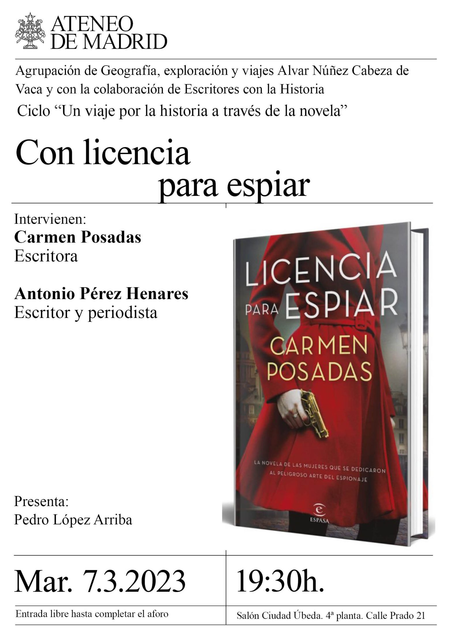 Agrupación Cabeza de Vaca y con la colaboración de Escritores con la Historia. Ciclo “Un viaje por la historia a través de la novela”. Intervienen: Carmen Posadas, escritora; Antonio Pérez Henares, escritor y periodista. Presenta: Pedro López Arriba. Salón Ciudad de Úbeda. 19:30h.