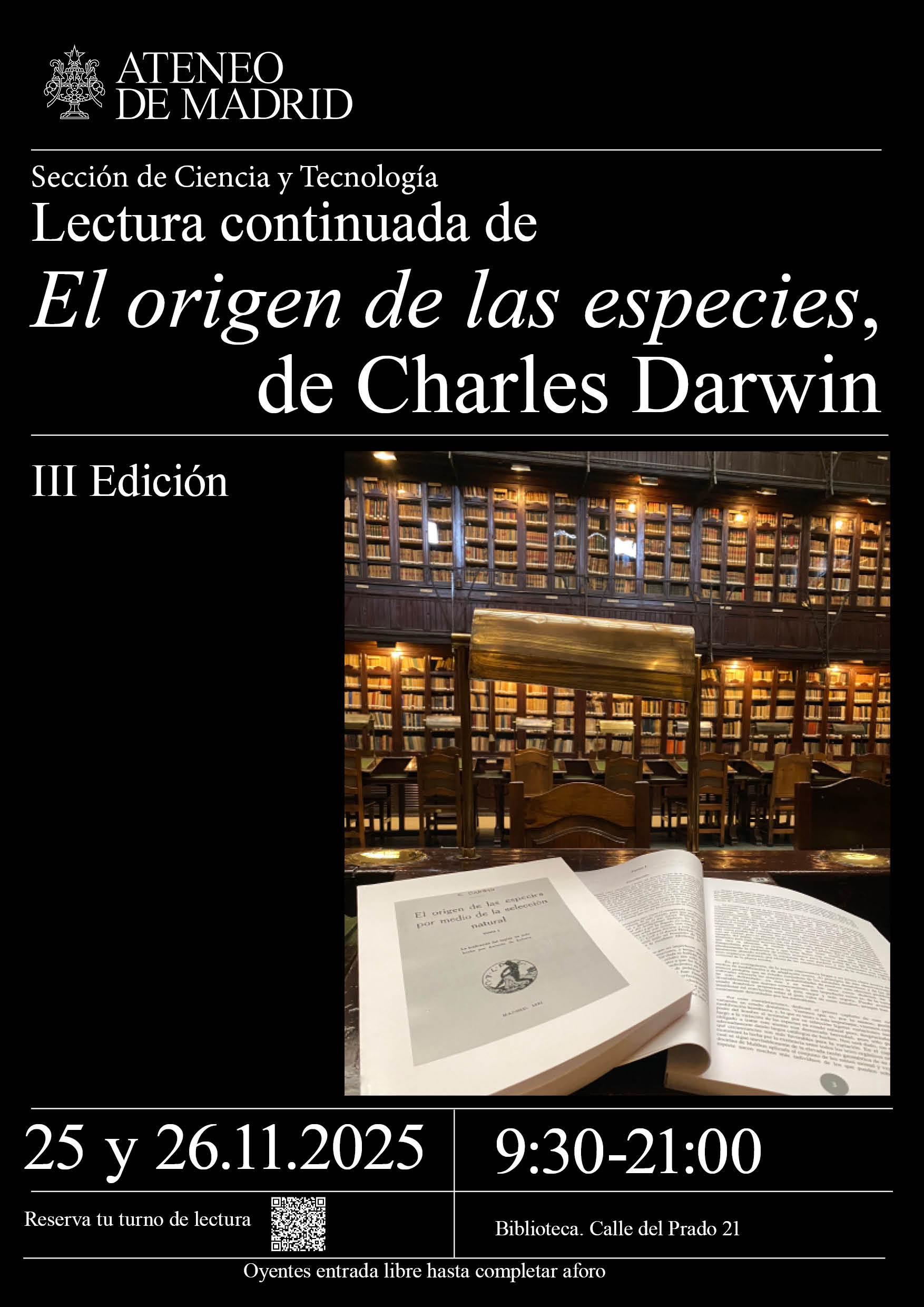 Reserva tu solicitud de turno de lectura (aquí). Nota de prensa (ver). Exposición “Ideas que transformaron el mundo: Darwin y el darwinismo” en la biblioteca del Ateneo de Madrid (información)
