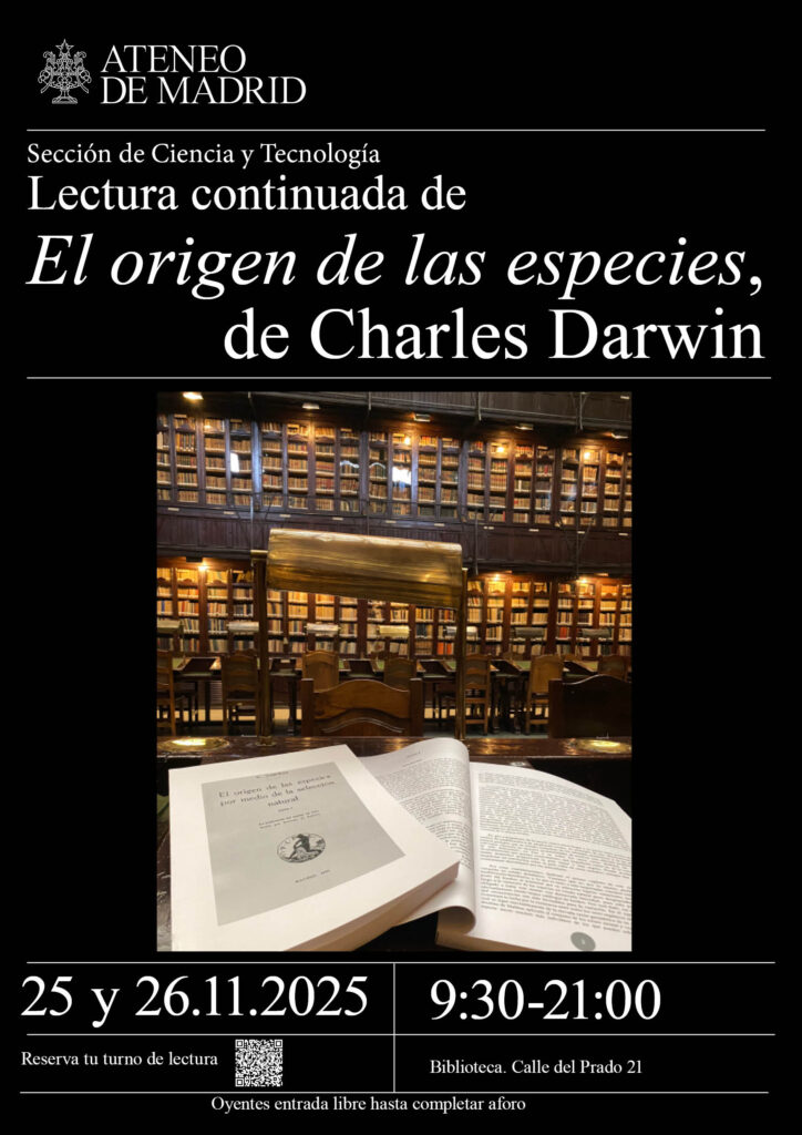 En el Ateneo de Madrid celebramos el diálogo entre ciencia y literatura con la lectura continuada de El origen de las especies, de Charles Darwin, publicada por primera vez el 24 de noviembre de 1859 y traducida al castellano por Antonio de Zulueta en 1921.