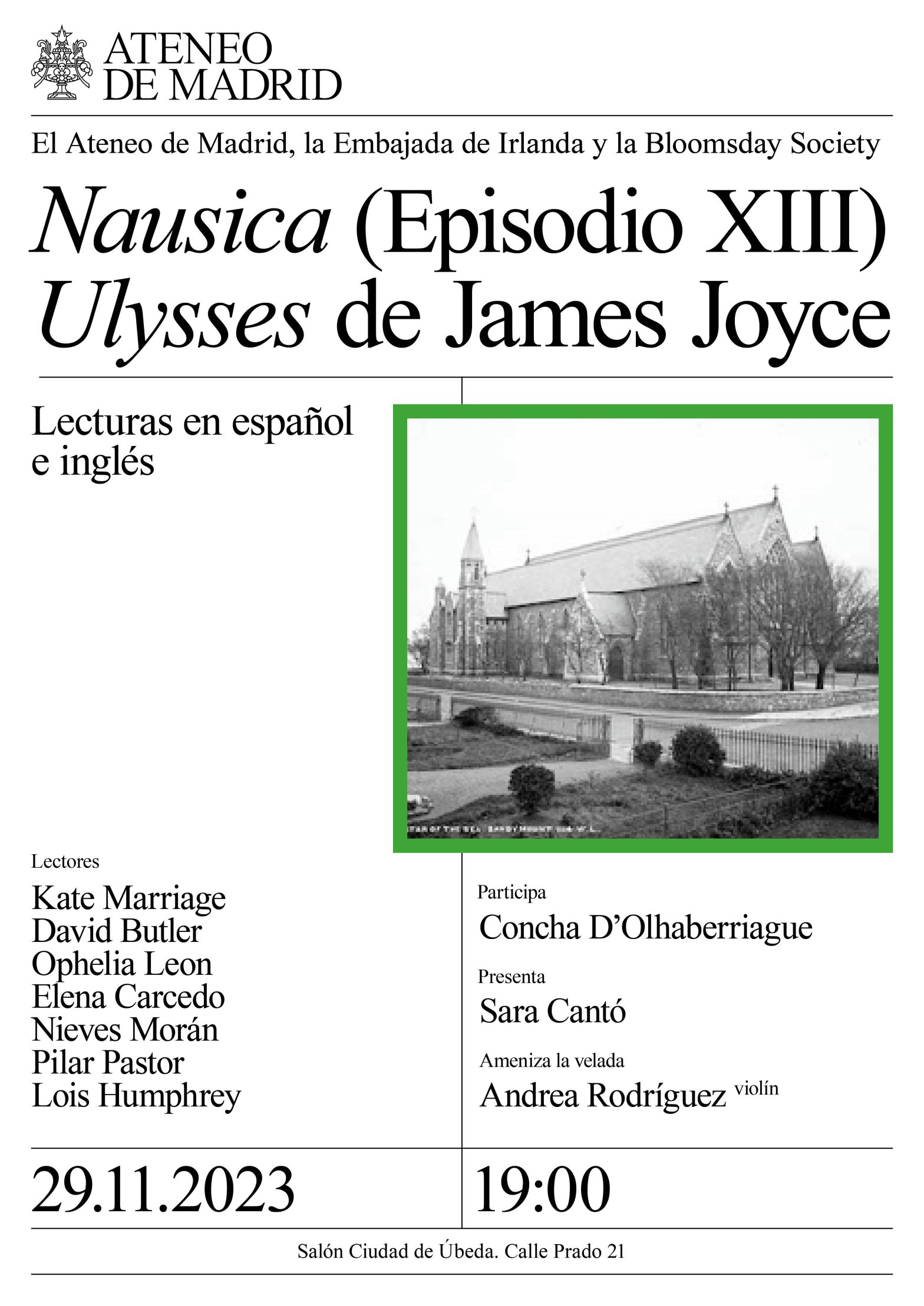 El Ateneo de Madrid, la Embajada de Irlanda y la Bloomsday Society. Lectores: Kate Marriage, David Butler, Ophelia Leon, Elena Carcedo, Nieves Morán, Pilar Pastor y Lois Humphrey. Participa: Concha D’Olhaberriague. Presenta: Sara Cantó. Ameniza la velada Andrea Rodríguez violín. Salón Ciudad de Úbeda. 19:00h.