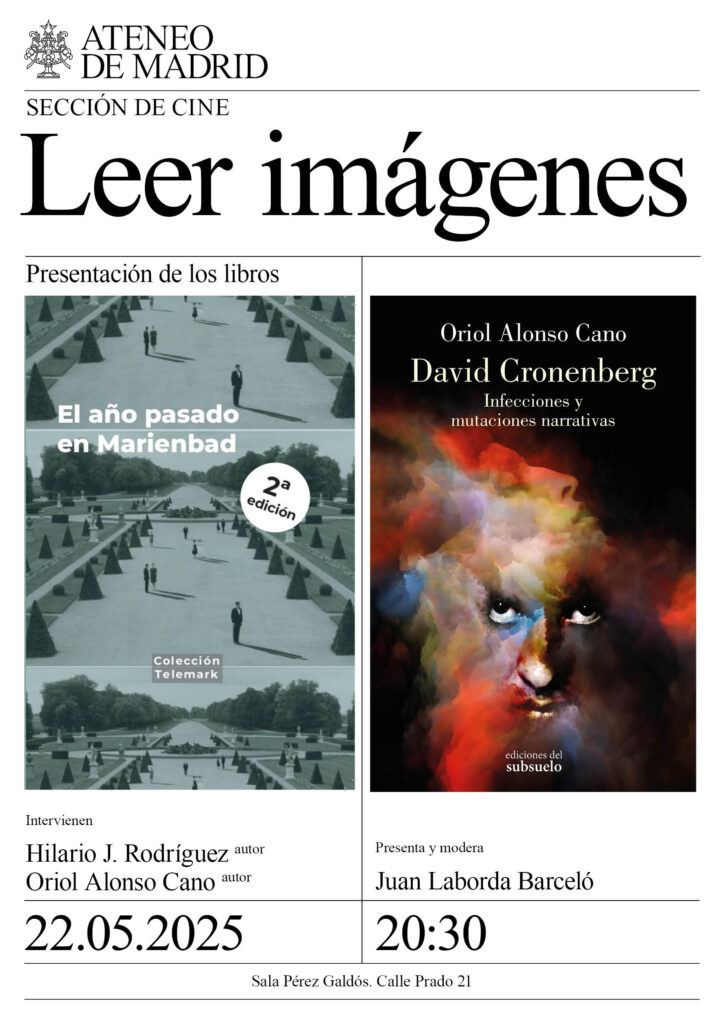 Sección de Cine. Hilario J. Rodríguez, autor de El año pasado en Marienbad, de y Oriol Alonso Cano, autor de David Cronenberg. Presenta y modera Juan Laborda Barceló. Sala Pérez Galdós. 20:30h.